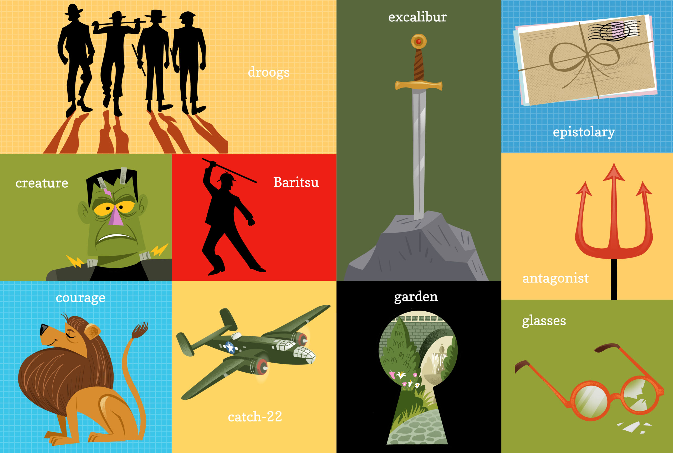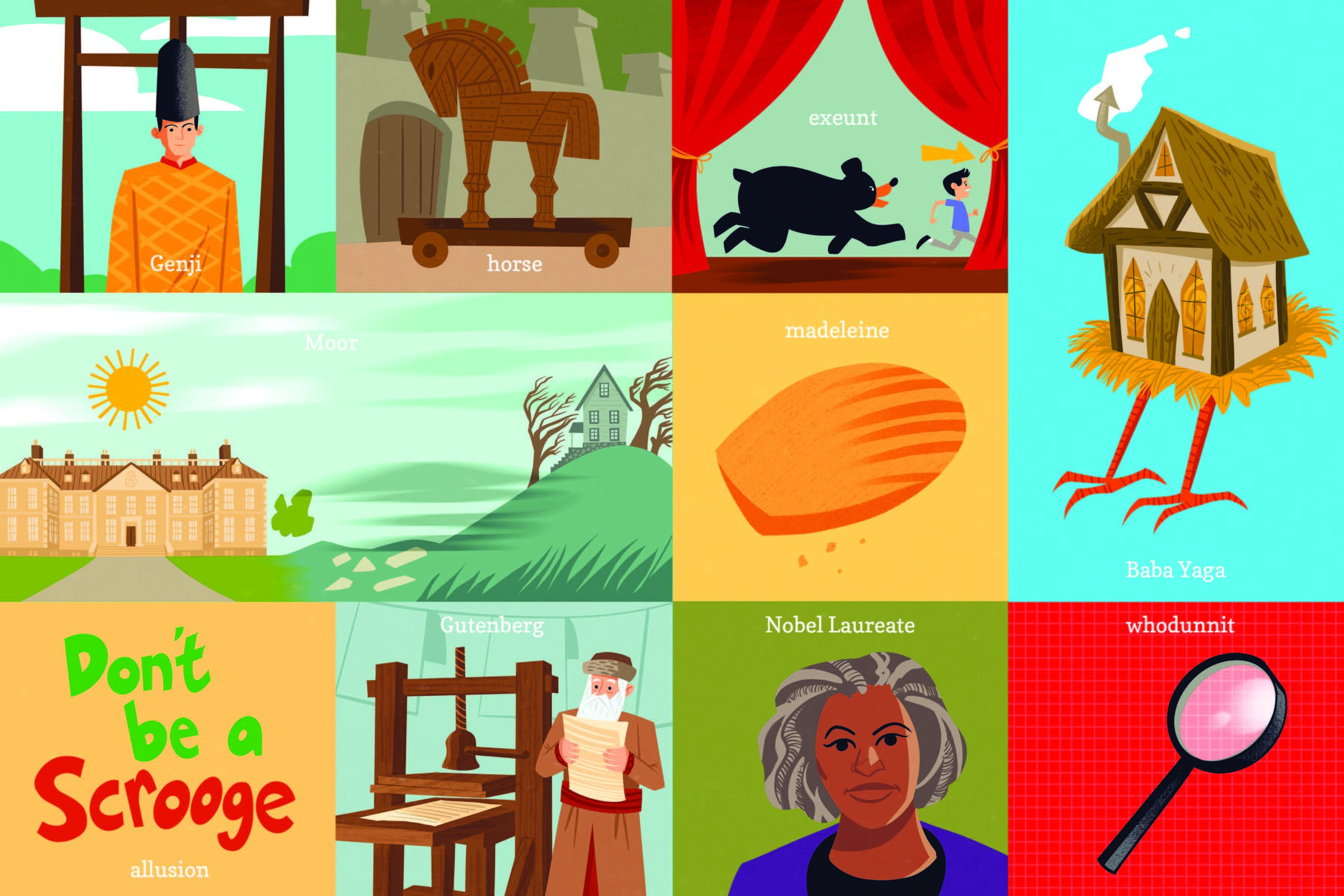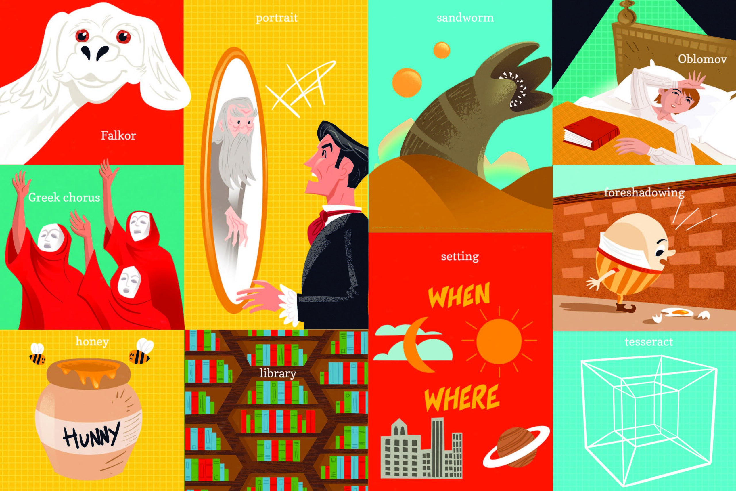 A tongue-in-cheek board book with characters and terms that every bibliophile wants to teach to the next generation, with colorful illustrations by Kyle Kershner