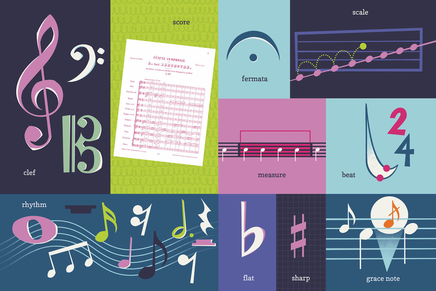 A playful new board book in the 100 First Words series, filled with musicians and terms that every music nerd wants to teach their little prodigy.