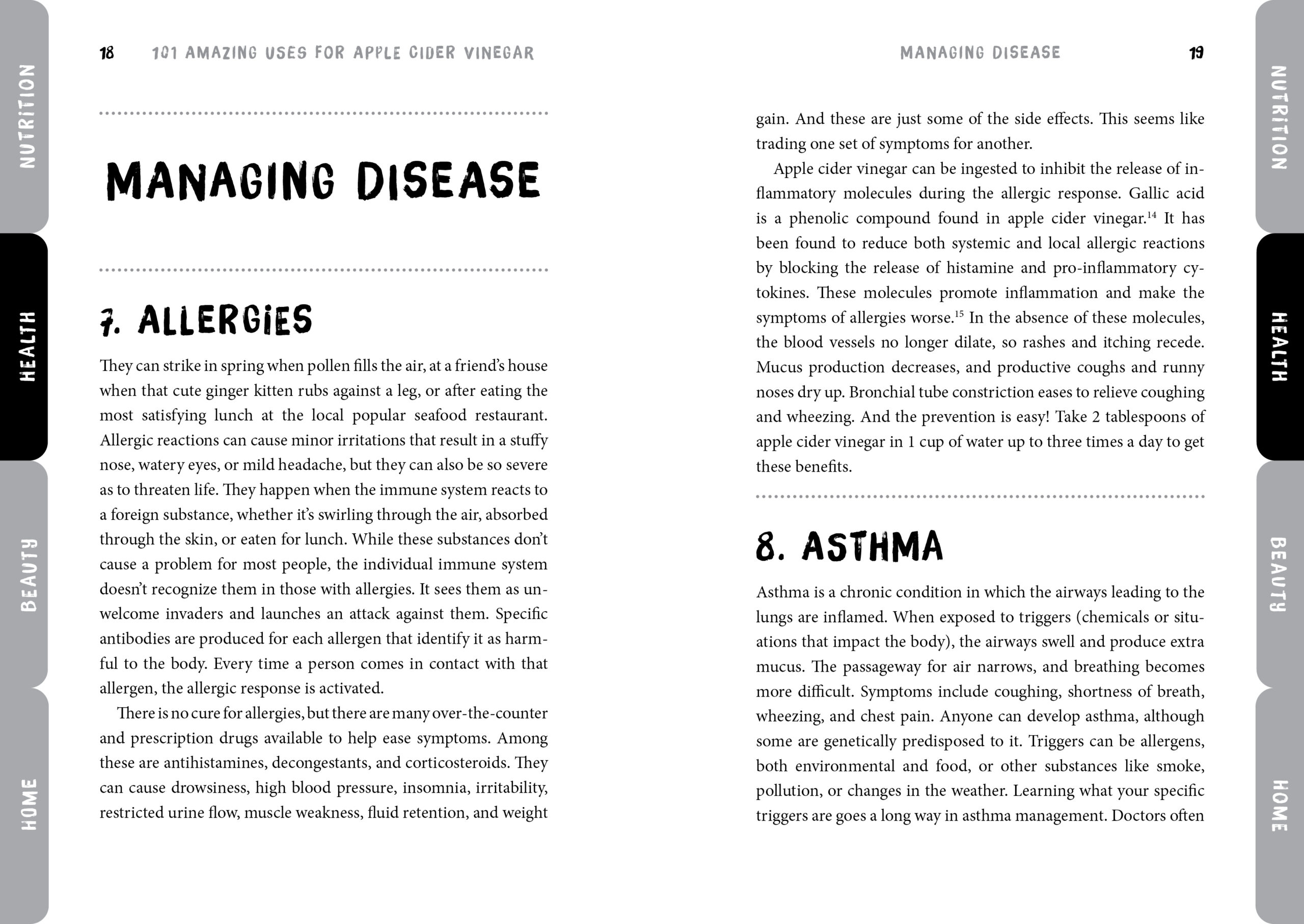 Millions of people are turning away from the harsh effects of modern solutions and back to the gentle but powerful benefits of nature’s oldest remedies. In her 101 Amazing Uses series, Susan Branson, a holistic nutritional consultant, expertly outlines 101 incredible uses for apple cider vinegar, ginger, essential oils, coconut oil, and more. Each book is divided into tabbed sections filled with a total of 101 easy-to-read, bite-sized benefits for everything from health to beauty to household cleaning. Promote healthy skin, reduce stress, boost your metabolism, tenderize meat, and more with these simple, accessible, natural solutions!