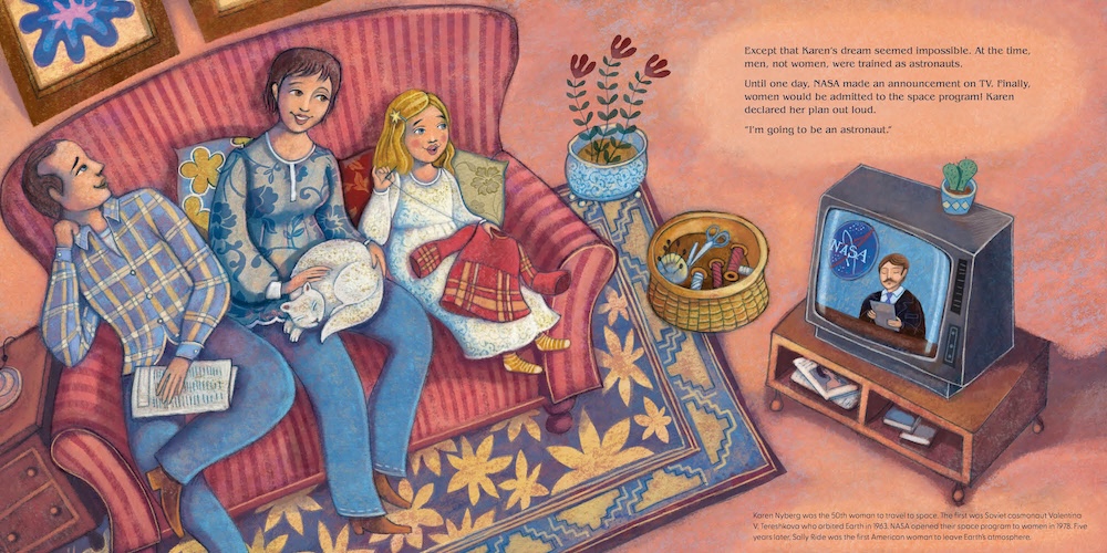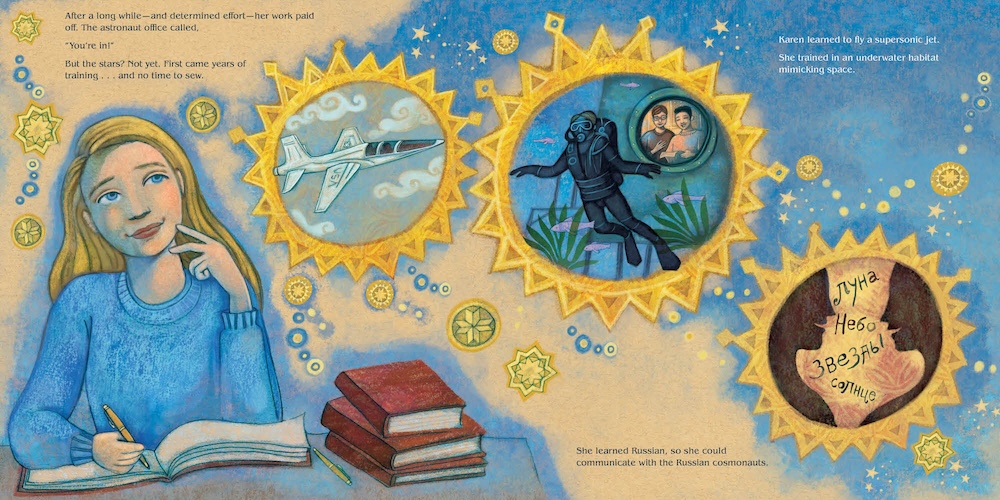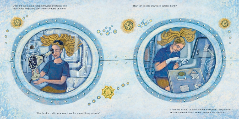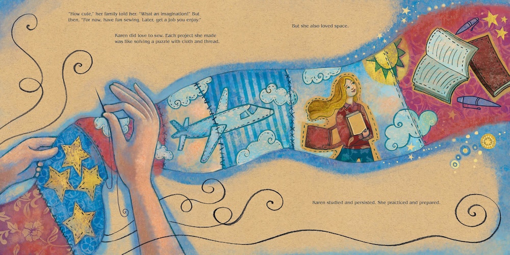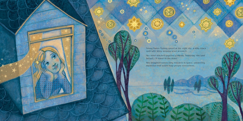 With dreamy illustrations from Alida Massari that perfectly capture Nyberg’s starry quilt and fun facts about space on every page, A Quilt of Stars is an accurate retelling of Karen Nyberg’s true story. This book is an inspiration to those in love with STEM and art, teaching children that anyone with a goal, a community, and a dash of persistence can stitch together a dream.
