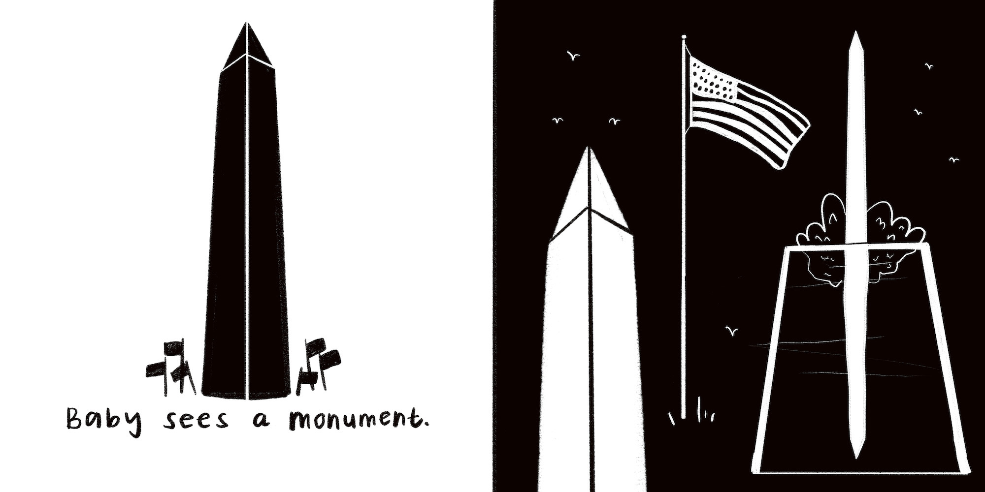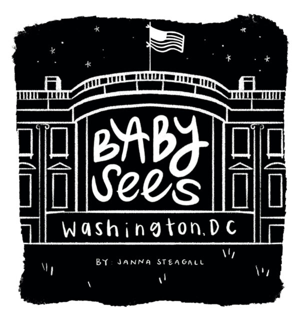A high-contrast board book designed for babies’ developing eyes by artist Janna Steagall, with a regional focus on Washington, DC