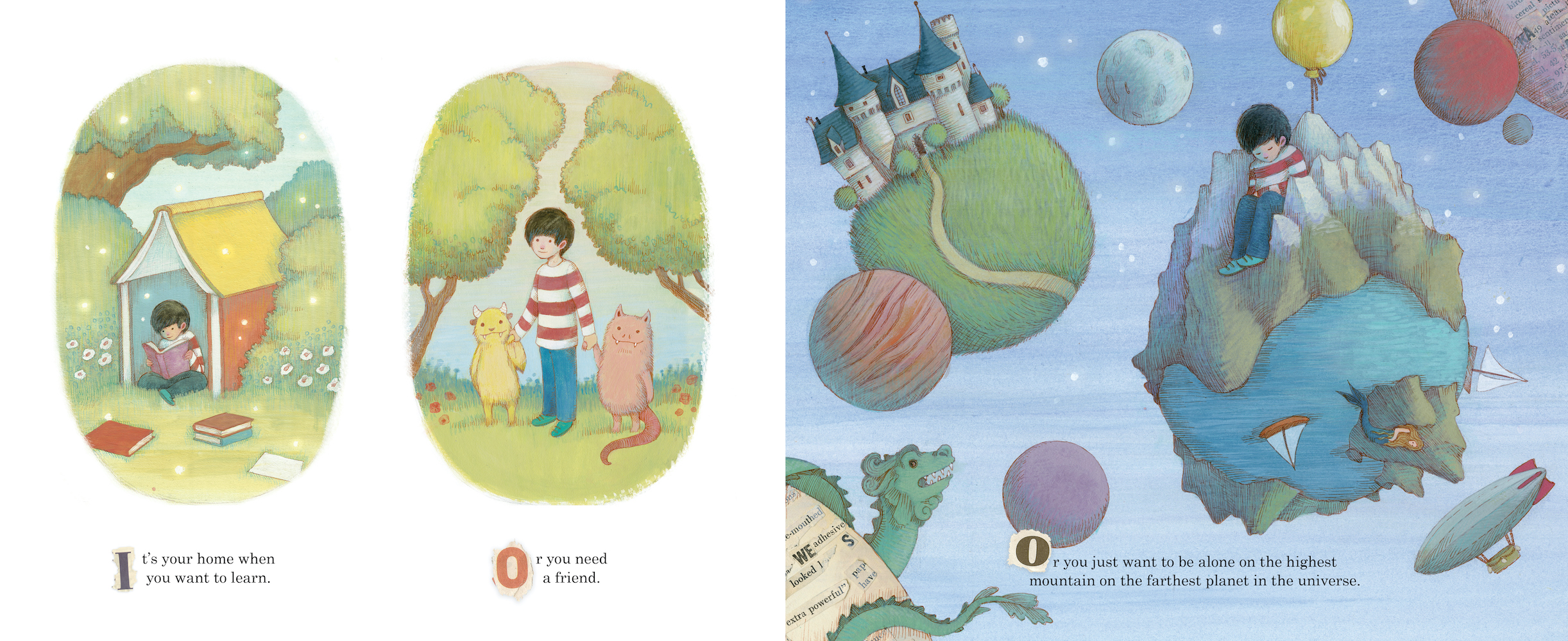 With soft, warm storytelling and stunning, whimsical illustrations, Book embarks the reader on an imaginative journey through the literary lands of fact and fiction, a world where passwords, viruses, and broken screens can’t stop a young boy’s earnest quest for truth. Join in this celebration of literature, scrape the skies of opportunity, traverse the forests of what-could-be, free the powers of knowledge, and discover once again why the humble book is anything but ordinary.