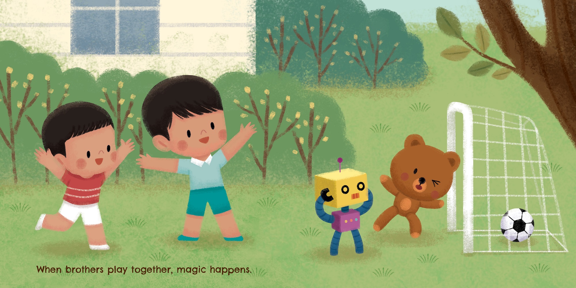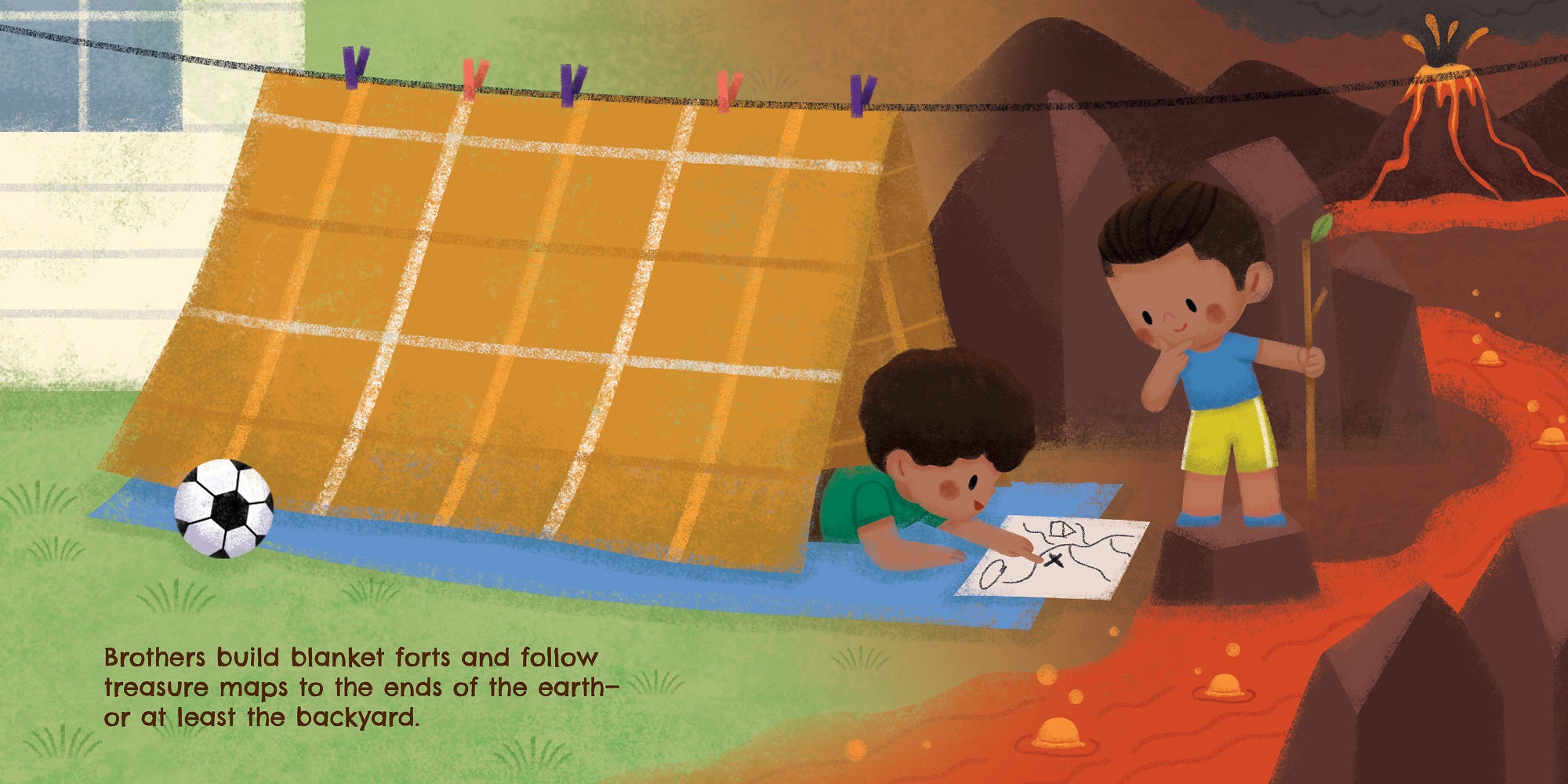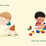 A board book about sibling adventures, squabbles, and reconnection, following three different pairs of brothers