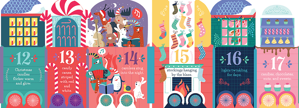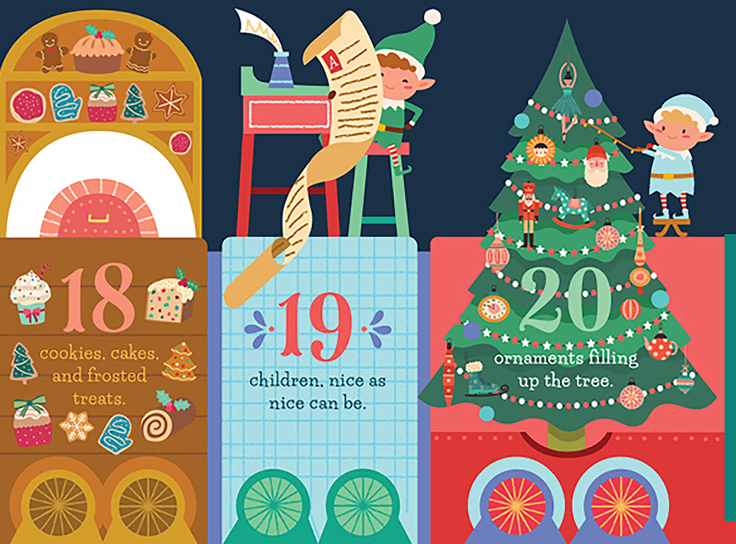 Join Santa, his enterprising elves, snuggly snowmen, friendly carolers, and the rest of Christmas's colorful characters on a train ride that teaches counting and seek-and-find activities all for the Christmas season.