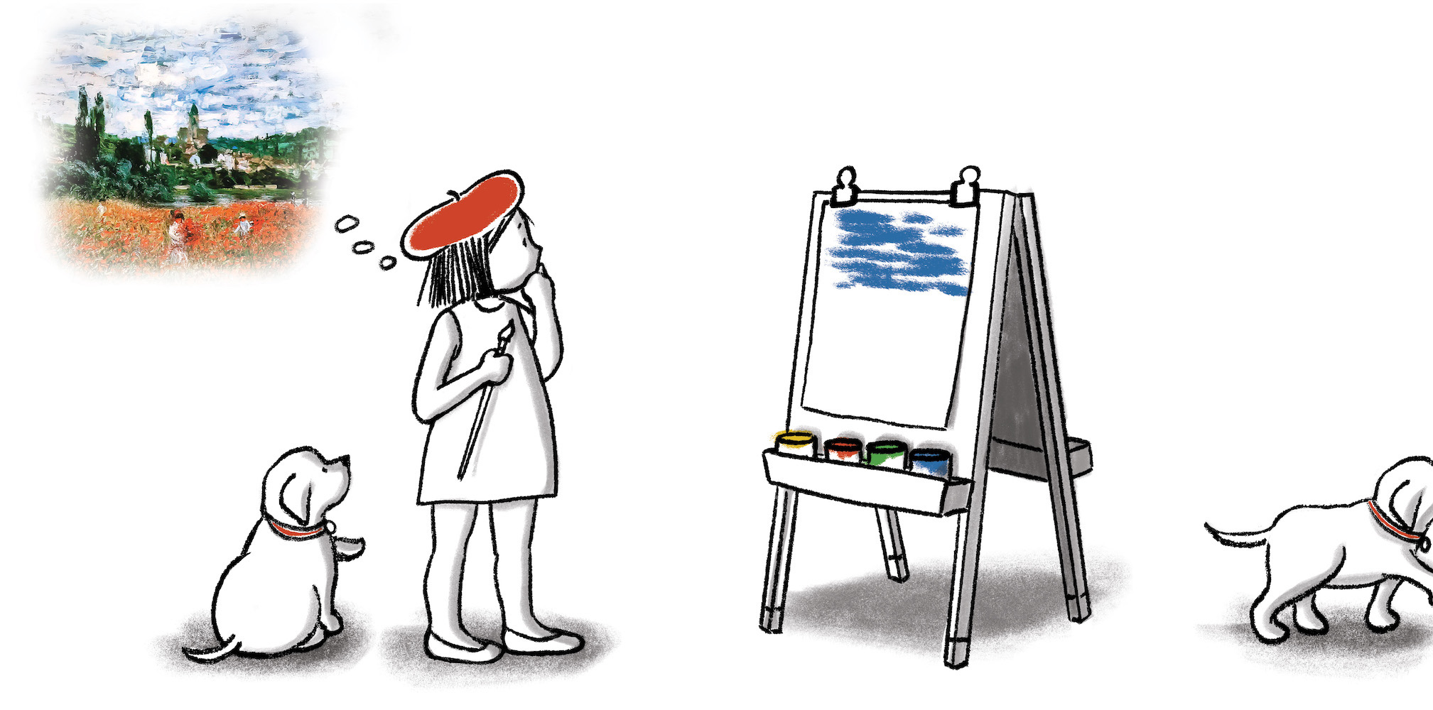 Take young artists on a journey of creative self-expression with this wordless picture book about art, Claude Monet, and Claude the dog.