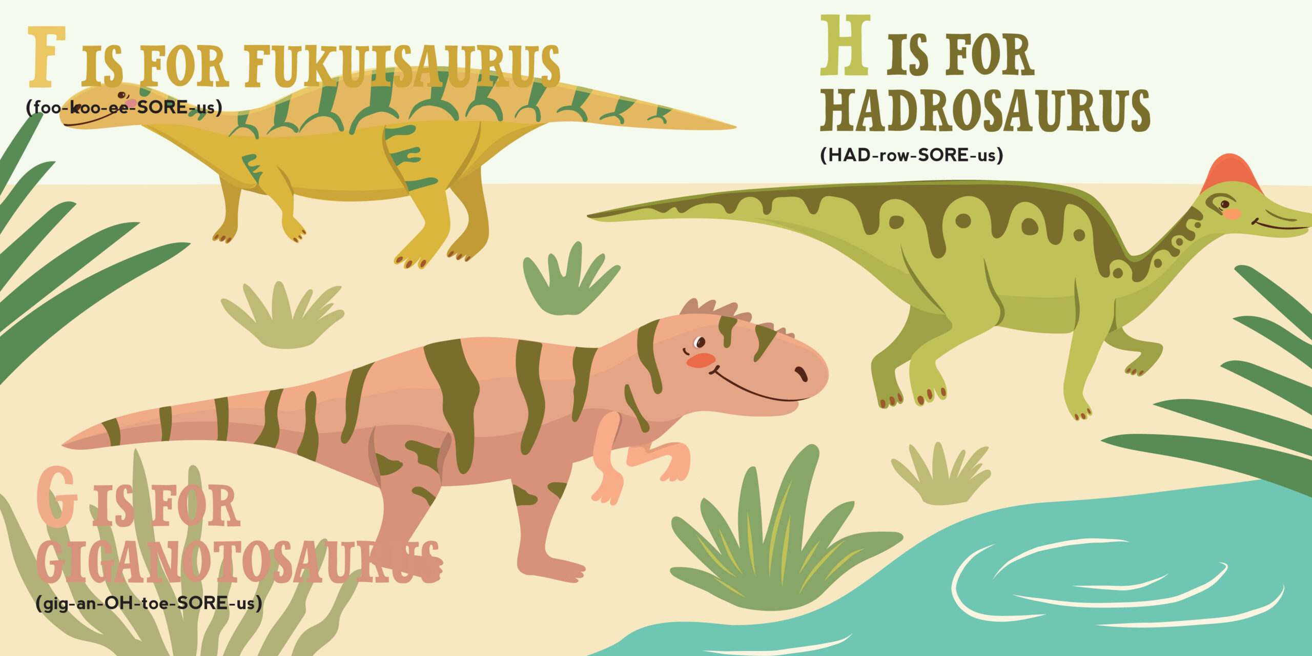 Take a trip back in time to the Mesozoic Era when dinosaurs walked the earth! With G for giganotosaurus, P for pachycephalosaurus, and X for xenoceratops, the ABCs have never been so T-riffic! Every little dino lover will have a roaring good time learning dinosaur names all the way down to zalmoxes.