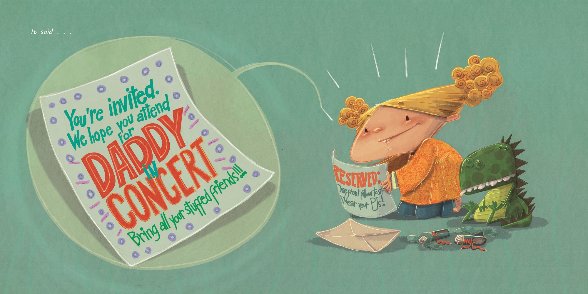Daddy is going to bring the house down with a private concert in the living room. Bring all your stuffed friends to the living room and enjoy the show!