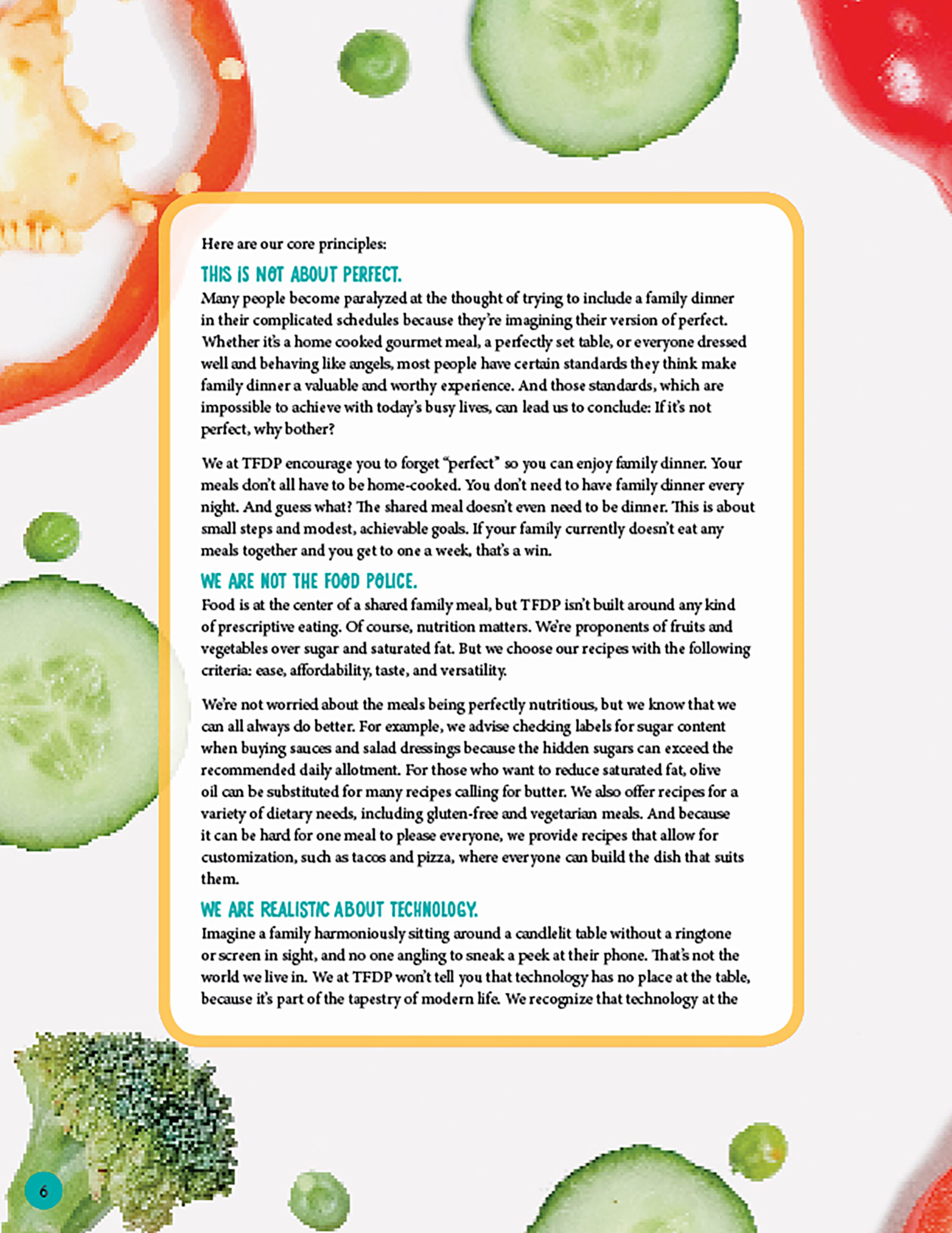 Eat, Laugh, Talk also includes real stories from families who have successfully become a part of The Family Dinner Project’s growing movement. Let’s do dinner!