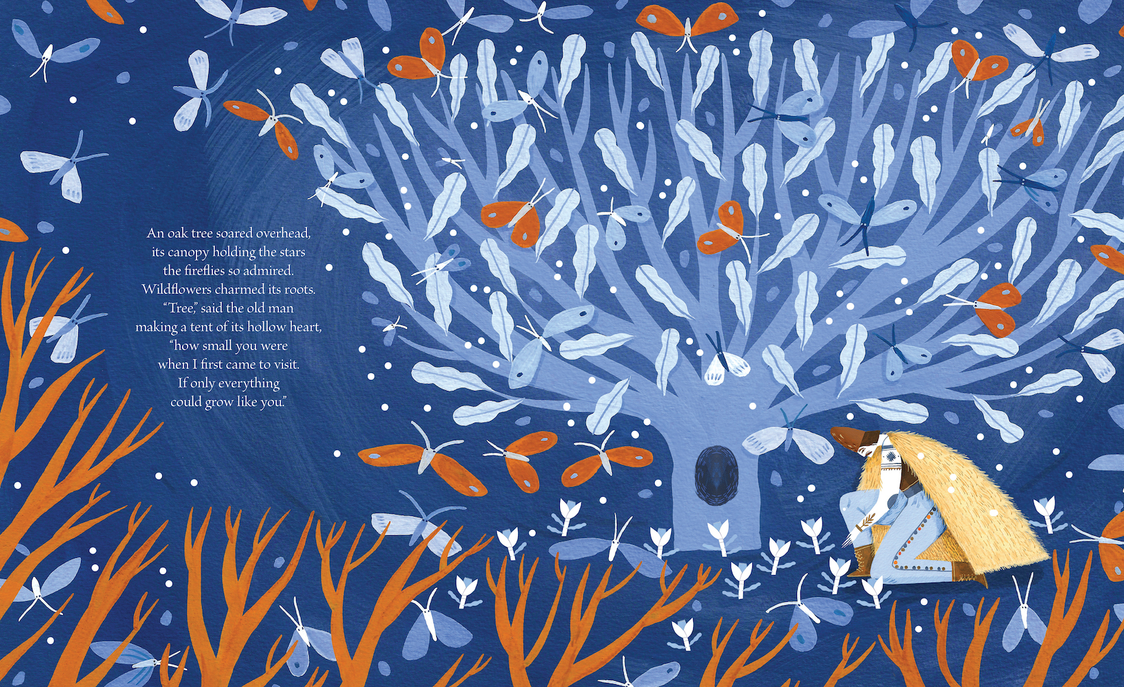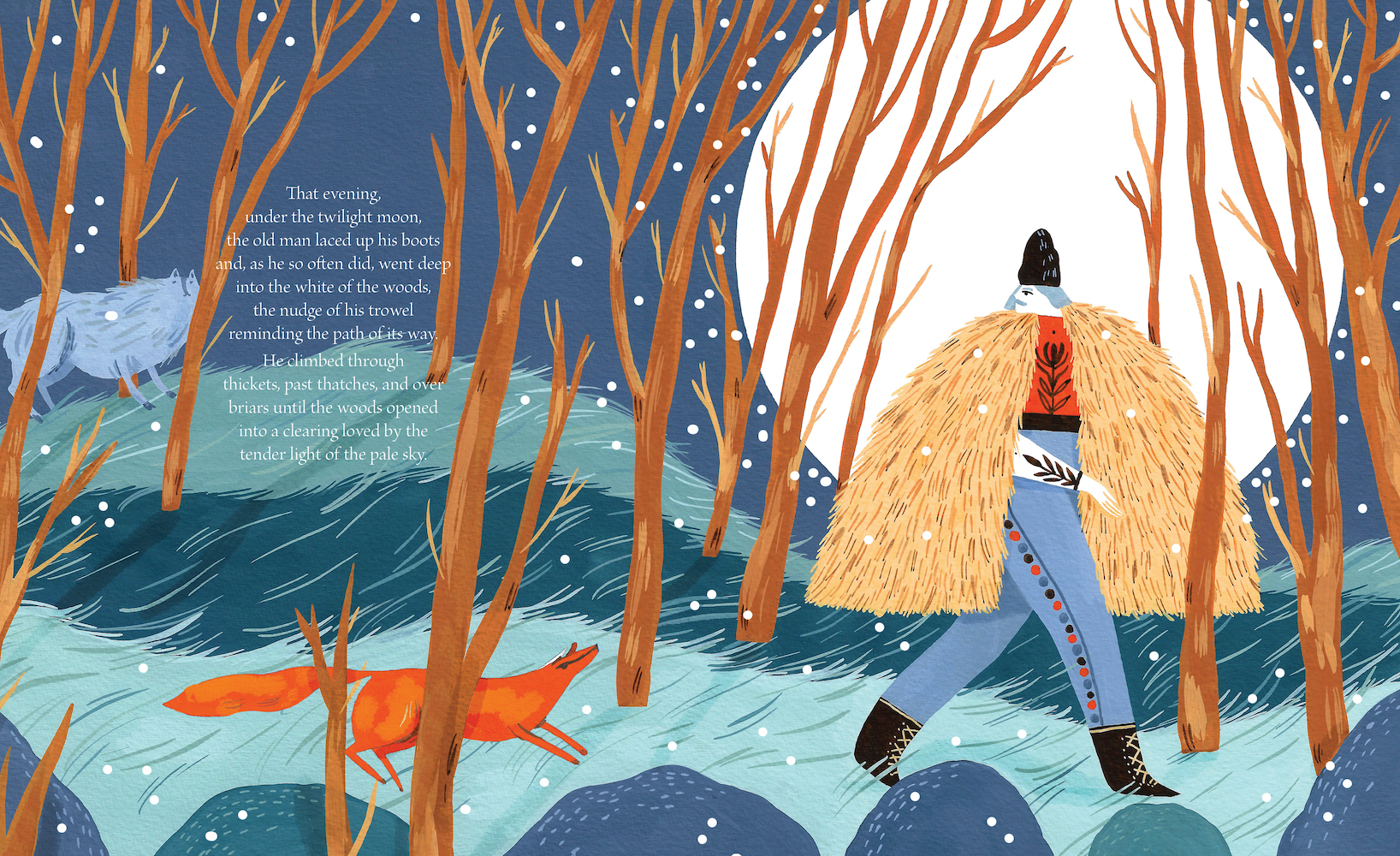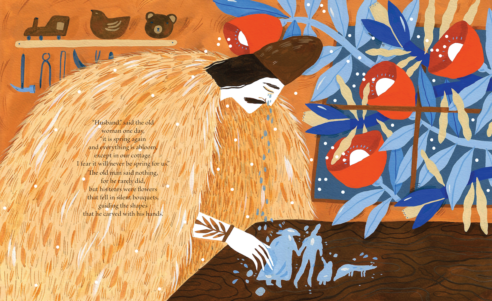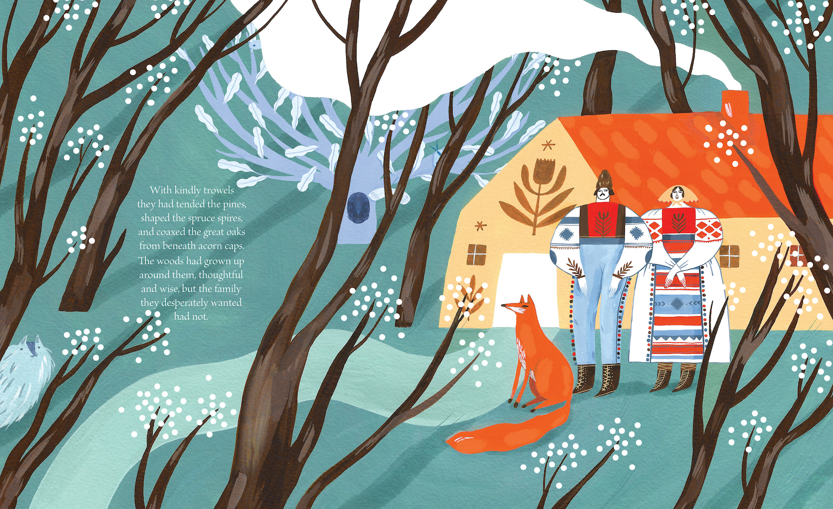 When a great white oak gifts an old man a branch imbued with magic, he carves five wooden matryoshka dolls, “each smaller than the last.” The wooden dolls take on a life of their own as they frolic from one season to the next, bringing the old man and his wife a joy they had always longed for. Beautiful verse and stunning, traditional illustrations full of woodland creatures and playfully painted matryoshka dolls explore a tale of heartache, hope, and love.