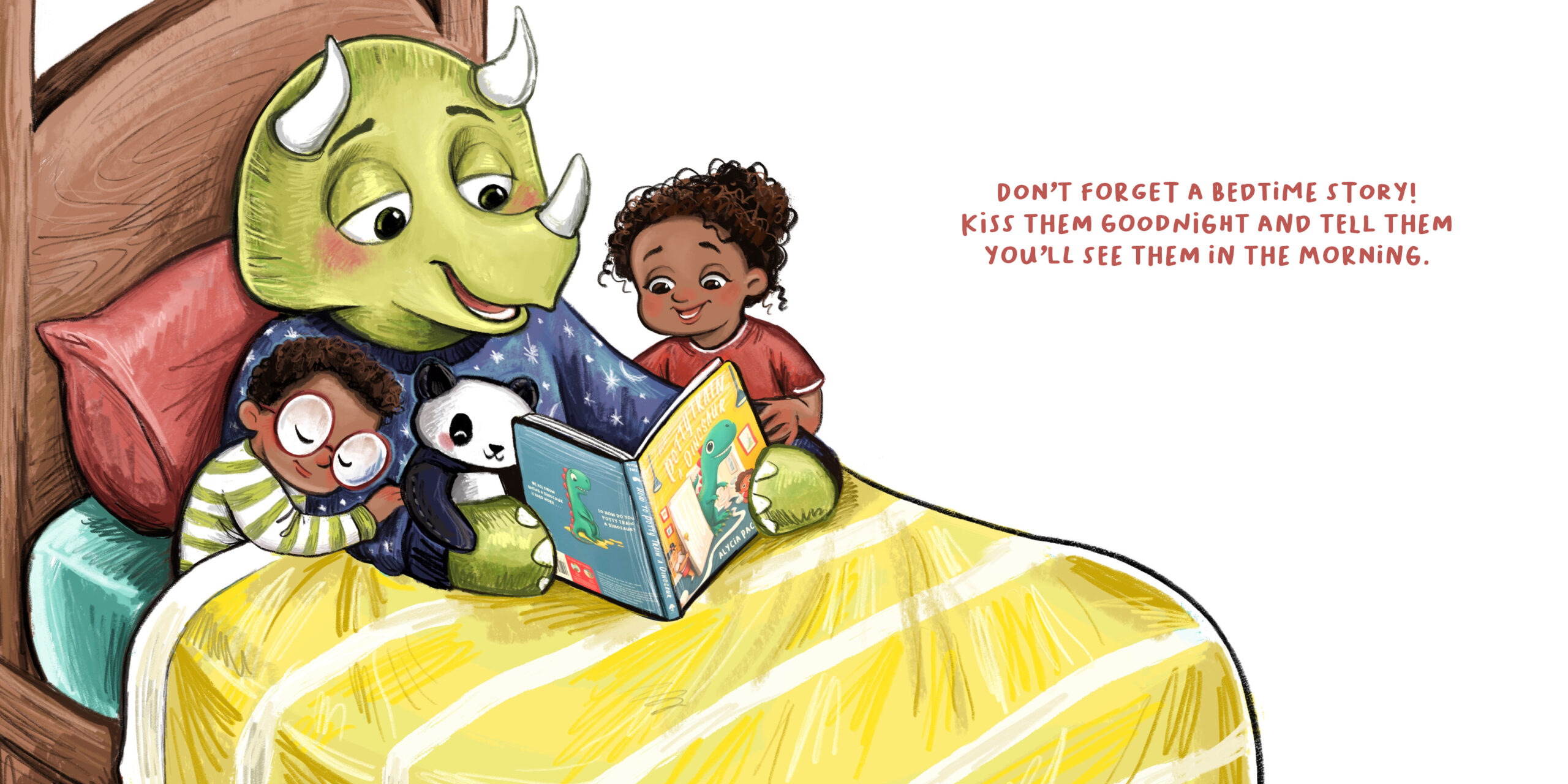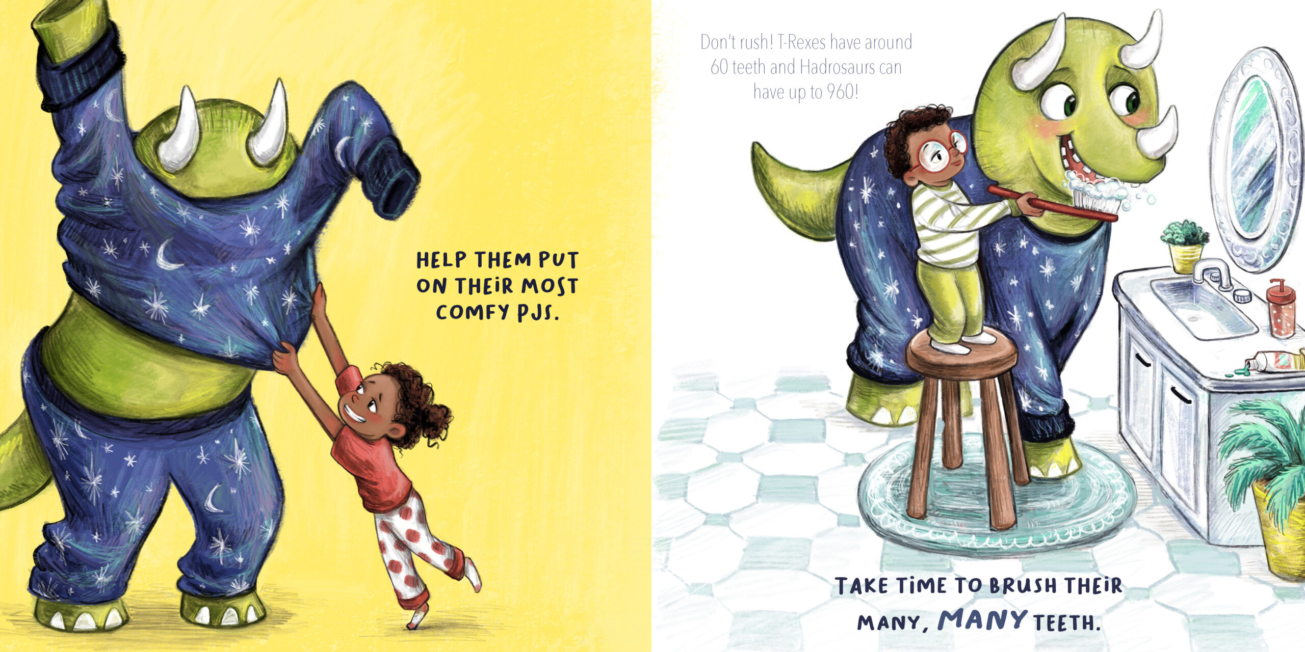 So how do you get a dinosaur to go to bed and STAY in bed? Along with a cute triceratops, two siblings learn the value of sleep as they attempt to put their dino to bed.