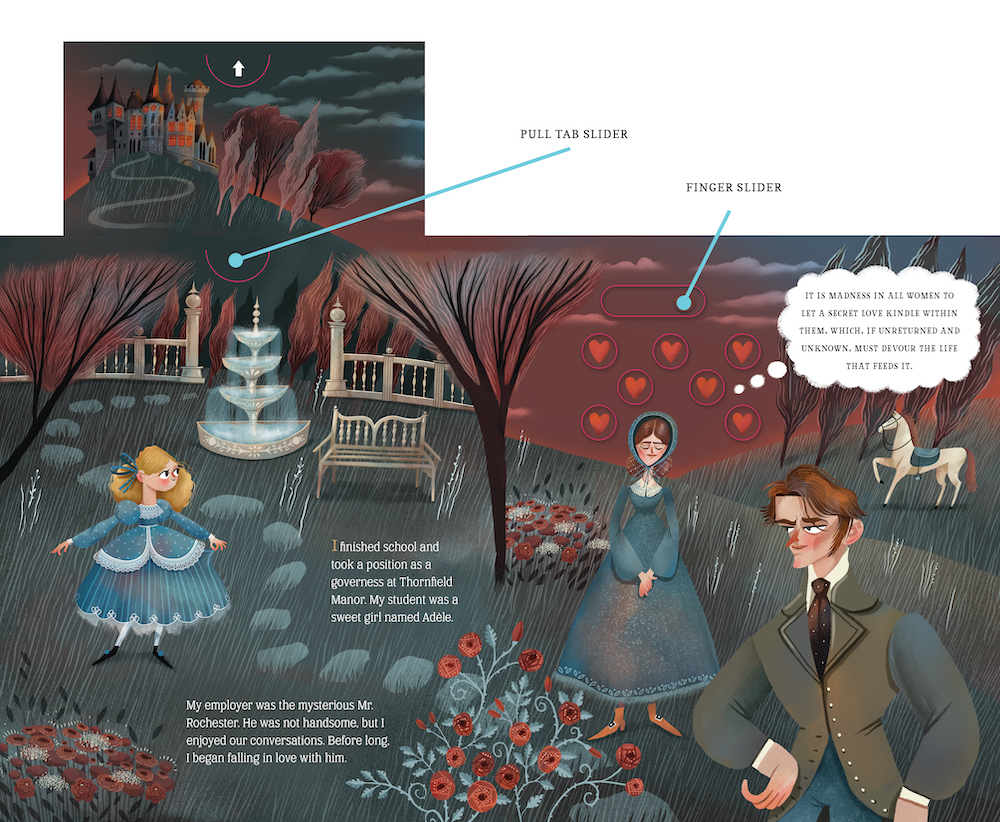Charlotte Brontë’s classic Gothic novel comes to life for children! Wheels, pull tabs, and other interactive elements invite kids to hide with Jane in the window-seat and help her solve the mystery of Thornfield Manor. Much more than a primer, Lit for Little Hands: Jane Eyre tells the actual story in simple, engaging prose, and fans of the novel will be delighted by the book's attention to detail and clever use of original dialogue and first-person POV. And the book's use of super-sturdy board means everyone can enjoy this tale of suspense and romance over . . . and over . . . and over again!