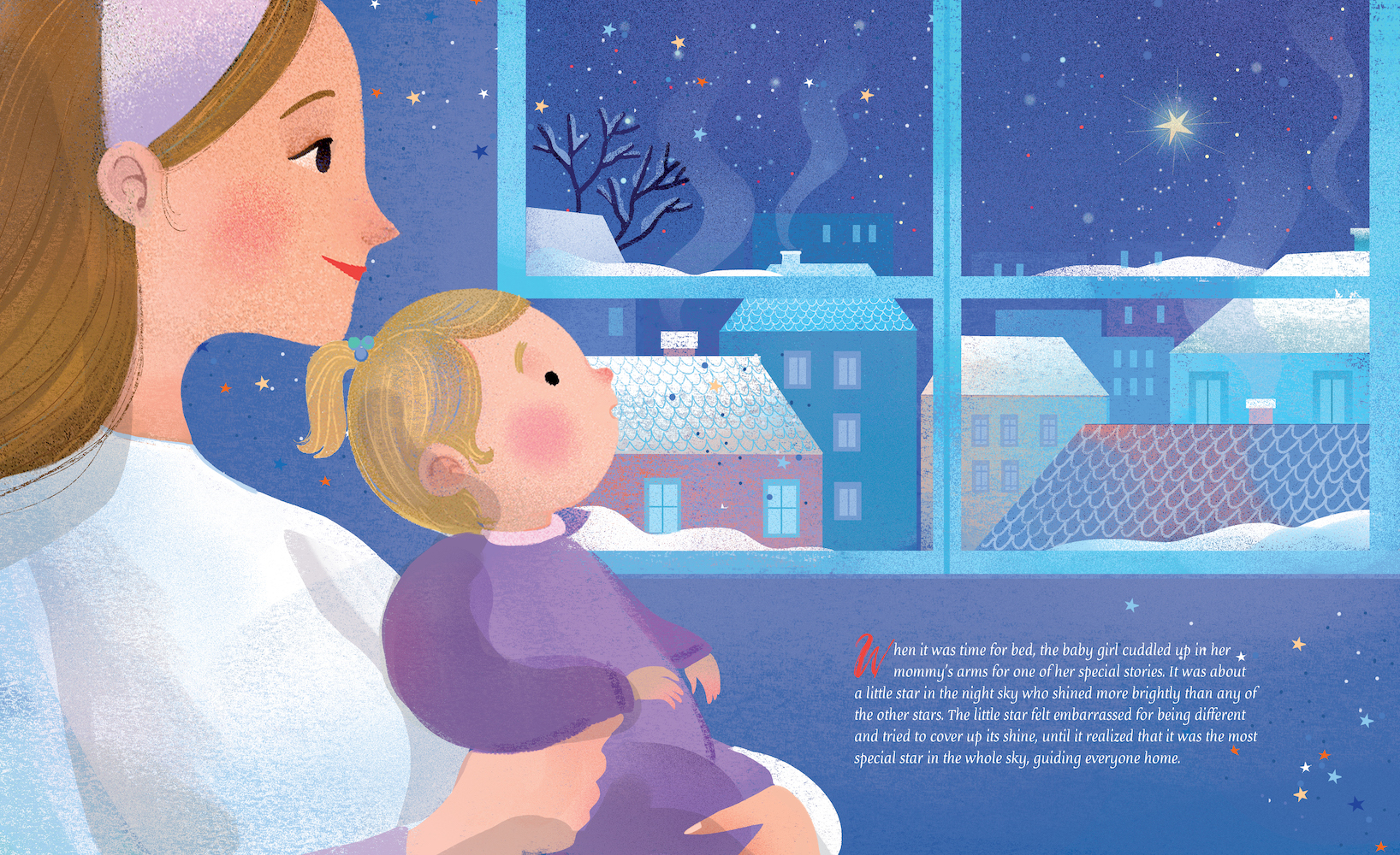 A daughter grows from a tiny infant to a young girl, and the years bring all the natural changes and accompanying emotions. Some emotions are big and scary. But the one constant in the little girl’s life is her mother and her magical stories. These stories stories teach her about her uniqueness, about her kindness, and about her power to face the inevitable darkness in life. But when she’s on her own, away from her mother, can she share her light?