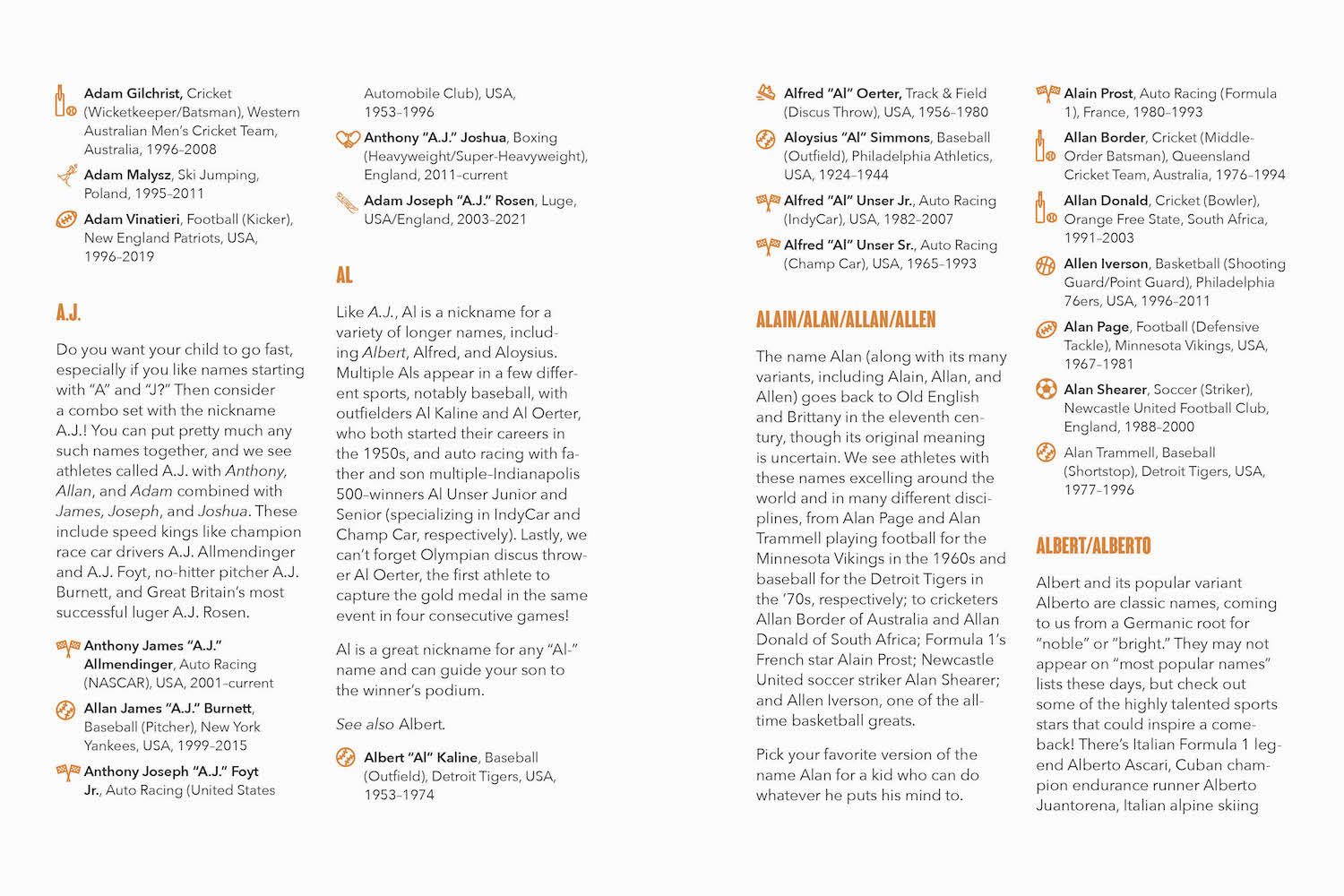 From quarterback Aaron Rodgers to windsurfer Zara Davis, Naming Your Little All-Star is packed with a variety of names of sports legends from around the world. Each entry includes the name, the etymology and meaning, and the athletes who made the name even greater. Including men, women, and nonbinary athletes, this unique baby-naming guide is just what every sports-loving family needs when it is time to decide what to name their baby.