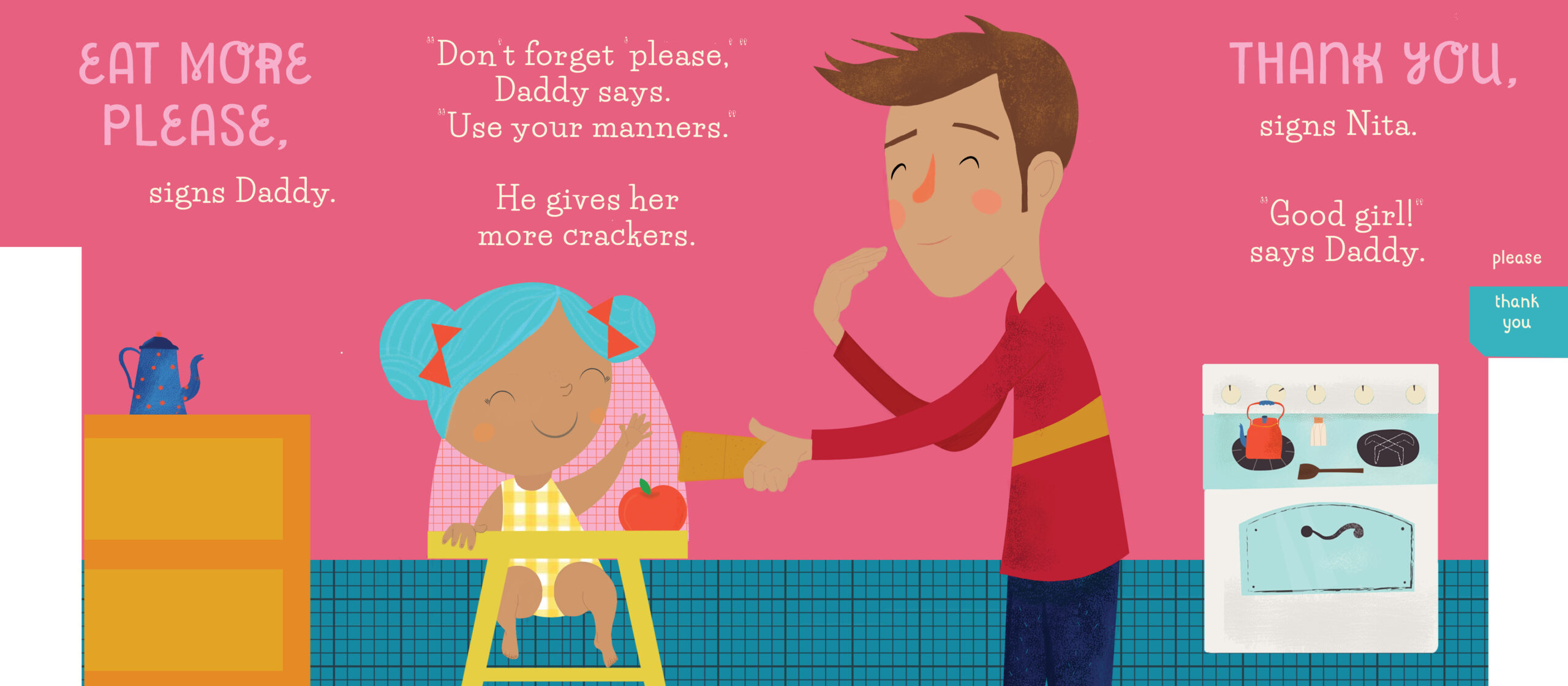 With adorable illustrations by Sara Brezzi, Nita and her family learn 10 ASL signs throughout the day. A simple story about Nita and her parents teaches each sign in context.