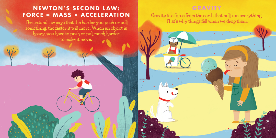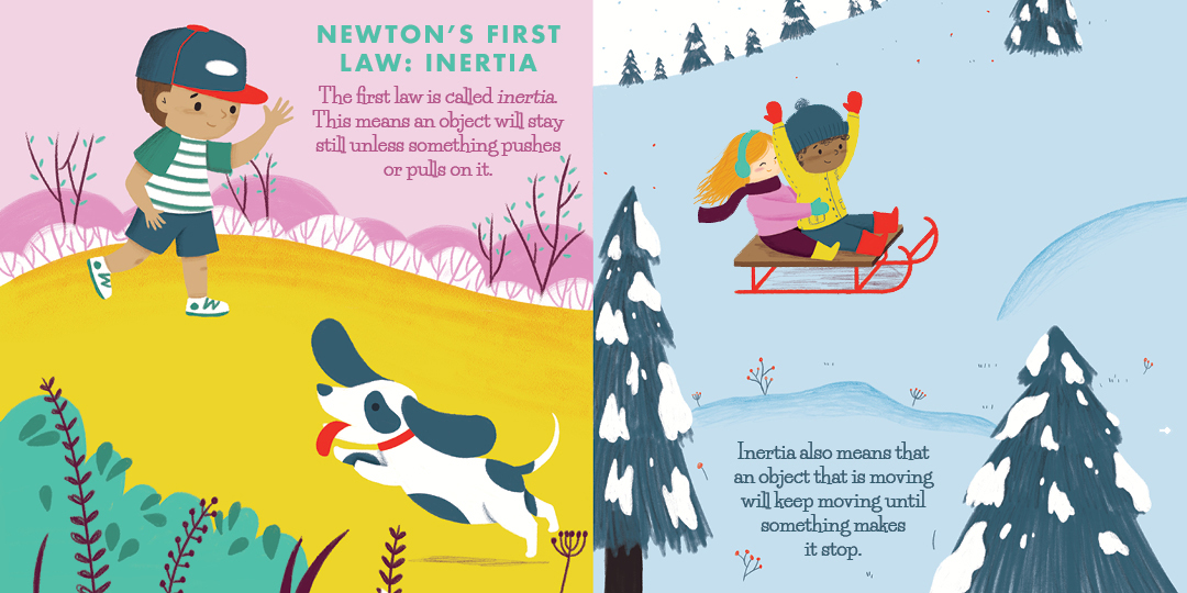 Engage with Newton on gravity and explore mass, lift, friction, and other amazing laws of physics with the most exciting and interactive physics book available for your little genius! With explanations and real-life examples of Newton’s Three Laws, this interactive board book invites children to pull the levers, turn the wheels, and watch as an airplane lifts off, a roller coaster zooms around a loop, and a boat floats. Each concept is animated and interactive to introduce and explore some of most important aspects of our physical world. Kids will delight in seeing centripetal force, inertia, thrust, and more come to life. A perfect tool for instructing and inspiring little physicists of all ages.