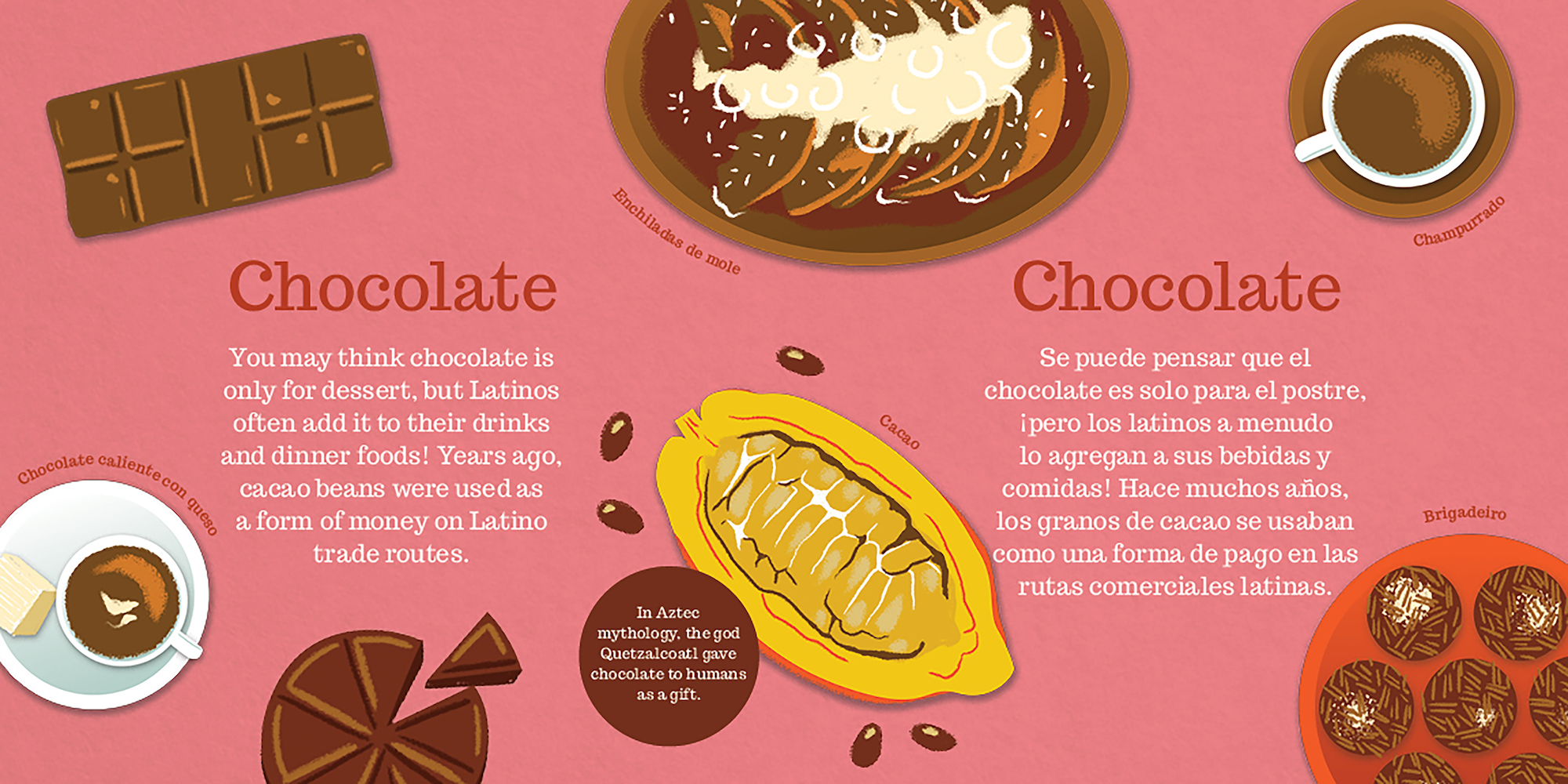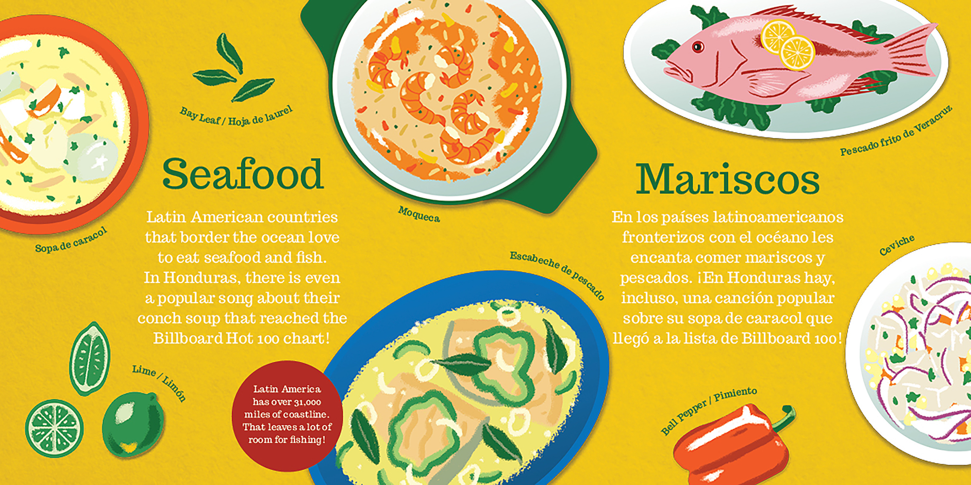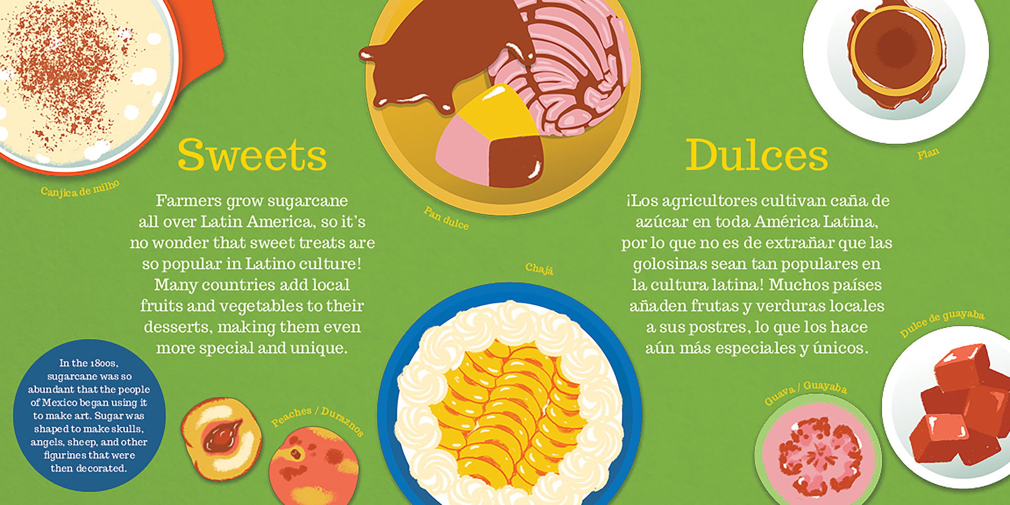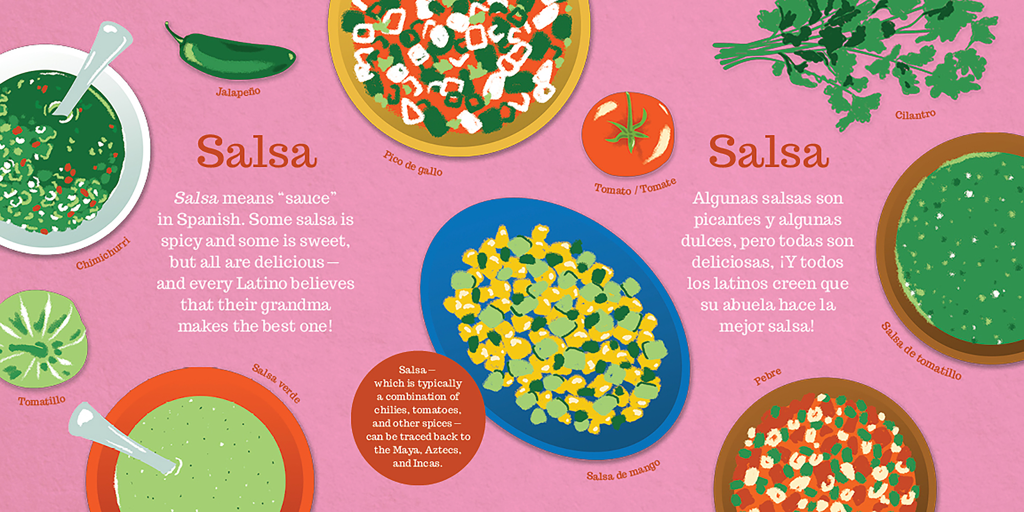 The dishes and their descriptions are given in both English and Spanish, and parents will enjoy the sidebars with additional fun facts about Latino food and culture. This bilingual board book takes the reader beyond a basic language primer and dives deep into the heart of Latino culture . . . which is the food, of course!