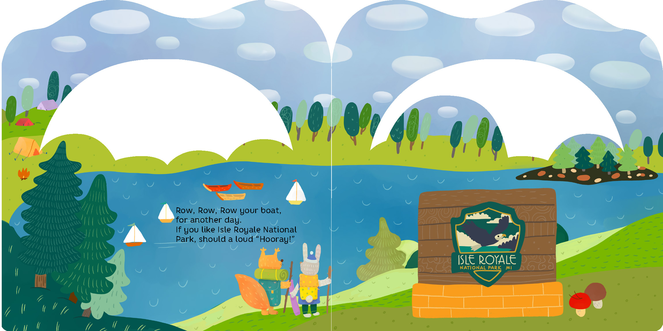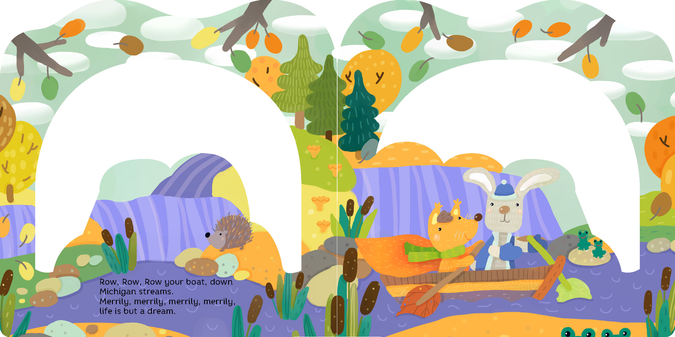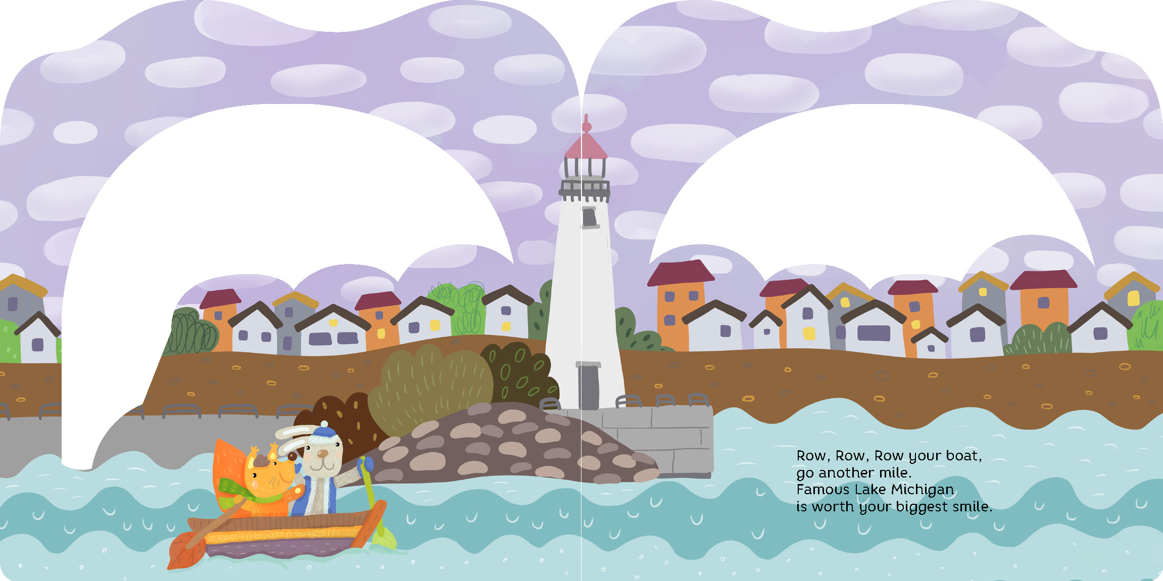Row, row, row your boat . . . in Michigan! The sights and scenery of Michigan spring to life in this adorable twist on the favorite children’s song. Each die-cut page of the layered board book reveals an imaginary boat sailing past Lake Michigan, Shiawassee National Wildlife Refuge, Windmill Island, and more! A delightful children’s introduction to the iconic places of Michigan. And when you’re done with your journey?