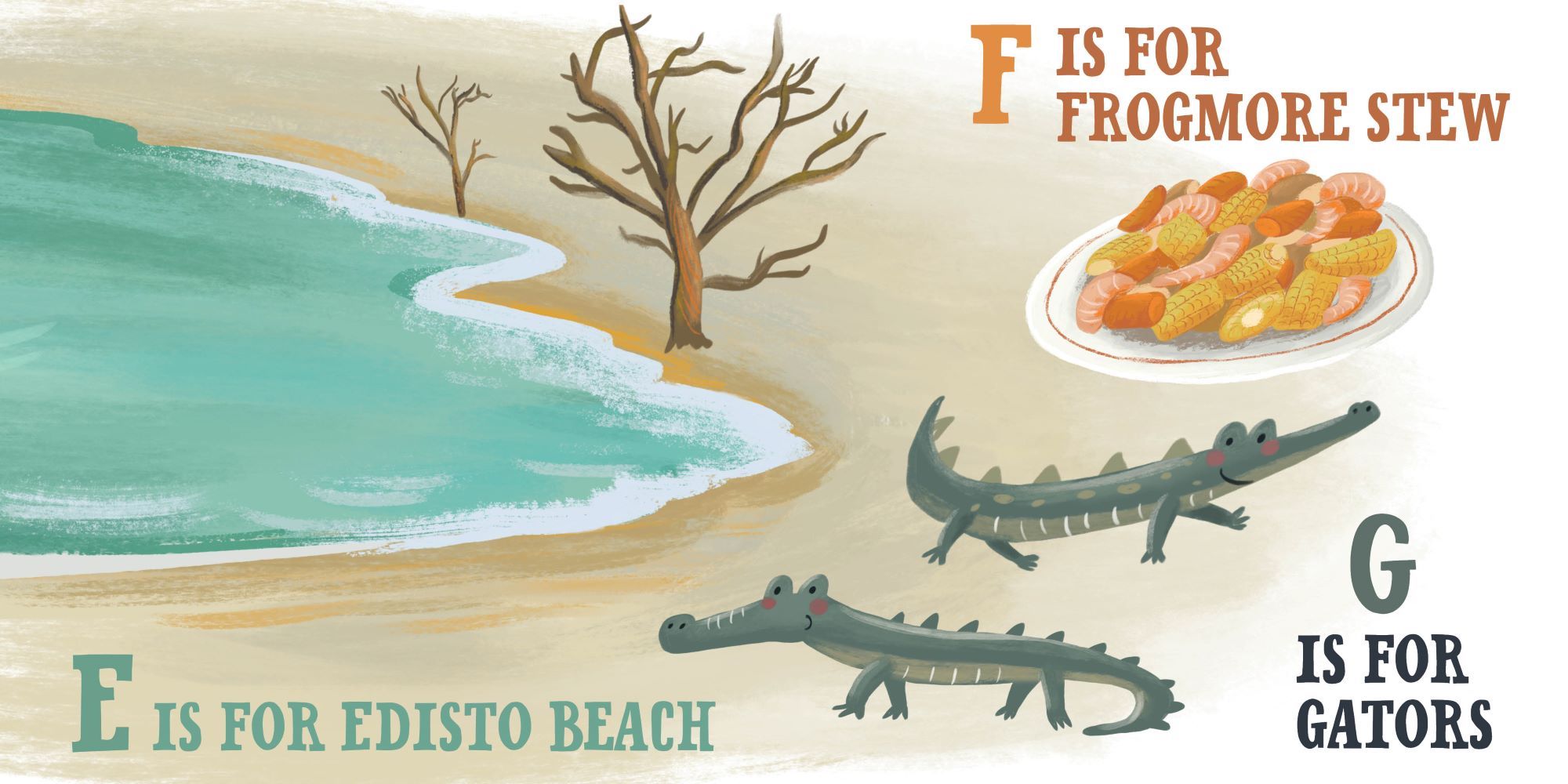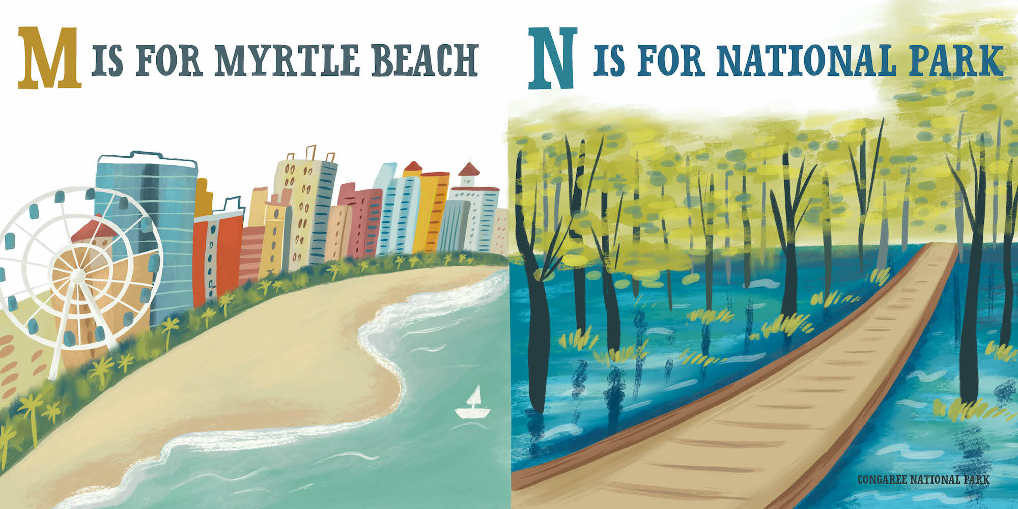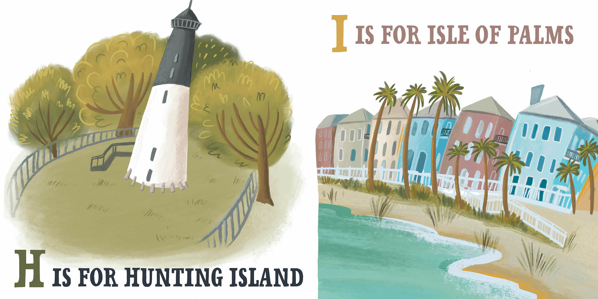 Take an alphabetized tour of the Palmetto state! With E for Edisto Beach, I for Isle of Palms, and G for gators, this colorful board book from Christopher Robbins and Volha Kaliaha introduces young readers to the culture and landmarks of South Carolina. Perfect for locals and tourists alike!