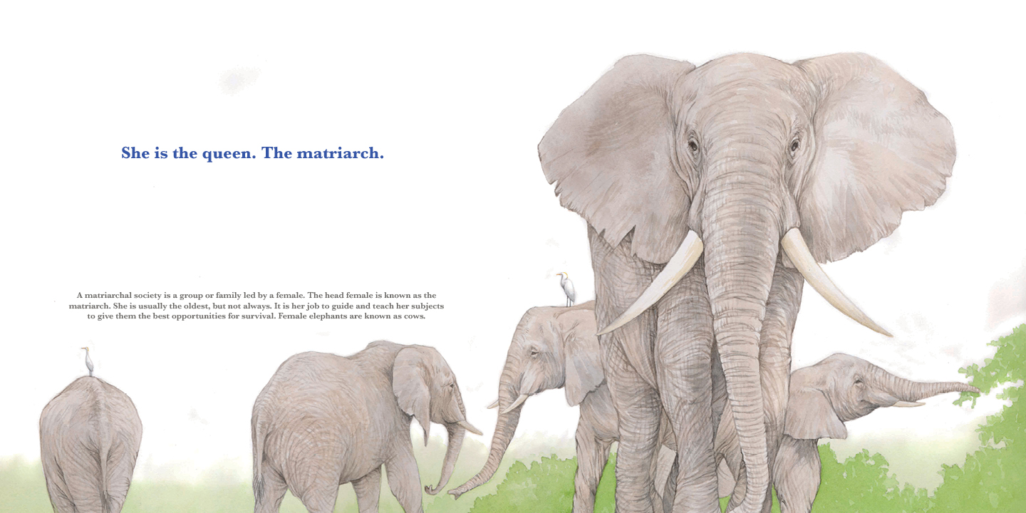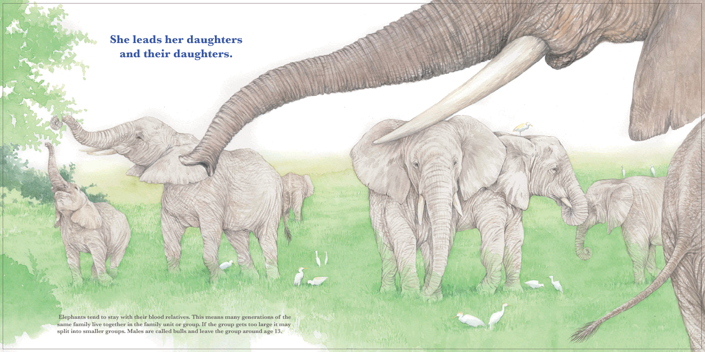 Inspiring text and striking illustrations follow the empowering journey of an elephant matriarch as she leads her family through the wilds of Africa. With facts about African elephants on every spread and a message that will encourage young girls to be the trailblazers of their generation, She Leads offers an incredible story and an unforgettable tribute to the strength of a true leader.