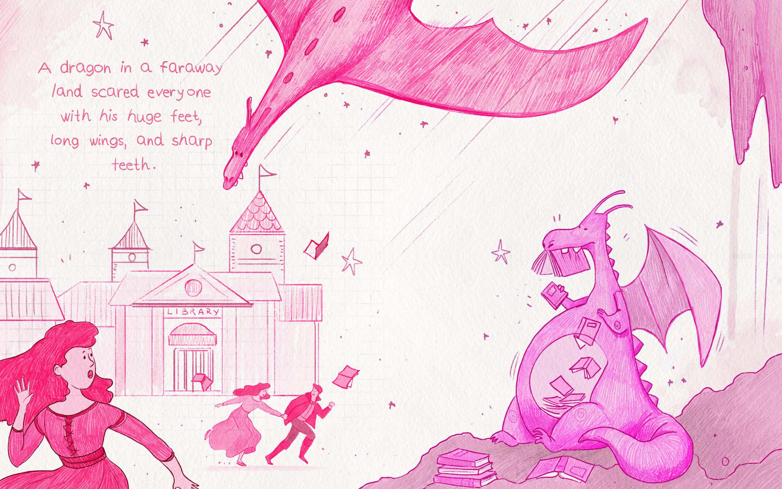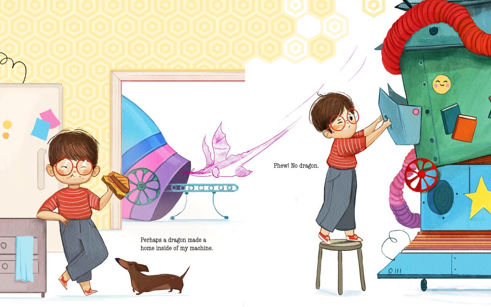 What happens when a book-loving child can’t get books fast enough? He’ll build a machine that will produce an entire library, of course! With a doohickey here and a whatchamacallit there, he puts his book machine together and waits for the books to pop out . . . and waits . . . and waits. After checking to make sure there wasn’t a dragon inside the machine gobbling up all his books, he deduces that he must write his own story.