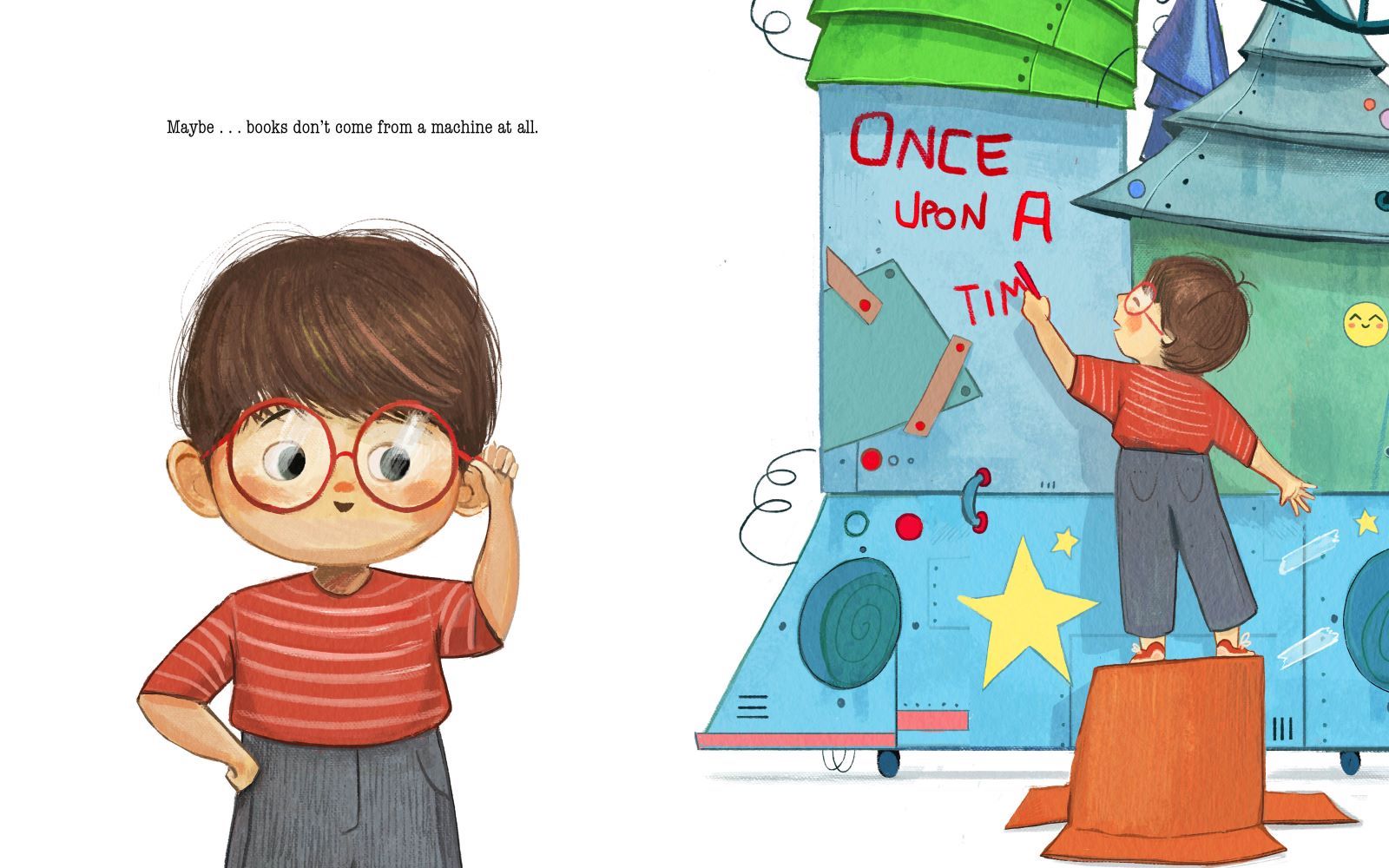 A boy’s innovative genius proves that machines can never replace writers in this picture book about creativity, imagination, and the writing process