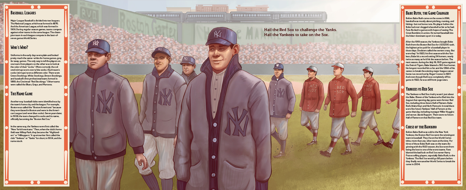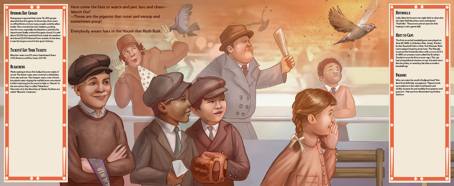 On April 18, 1923, the New York Yankees played against the Boston Red Sox in their very first game in the brand-new Yankee Stadium. All the key players were there—future Hall of Famers Babe Ruth, Waite Hoyt, Bob Shawkey, Miller Huggins—and so were the supporters—Eddie Bennett, the legendary Yankee batboy; Jack Lenz, Yankee Stadium’s first public announcer; five-year-old Little Ray Kelly, Babe’s lucky charm; and more than 70,000 fans! Every person in the stadium on opening day was part of this legendary event, and now you can be too.