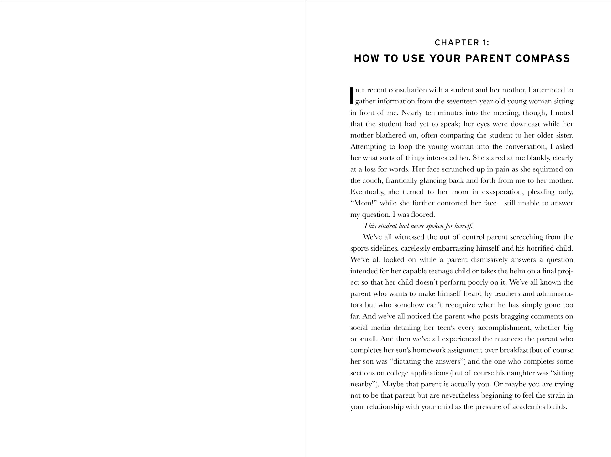 Bragging rights and bumper stickers are some of the social forces fueling today’s parenting behavior—and, as a result, even well-intentioned parents are behaving badly. Many parents don’t know how best to support their teens, especially when everyone around them seems to be frantically tutoring, managing, and helicoptering. The Parent Compass provides guidance on what parents’ roles should be in supporting their teens’ mental health as they traverse the maze of the adolescent years. For anyone daunted by the unique challenge of parenting well in this pressure-laden and uncertain era, The Parent Compass offers: