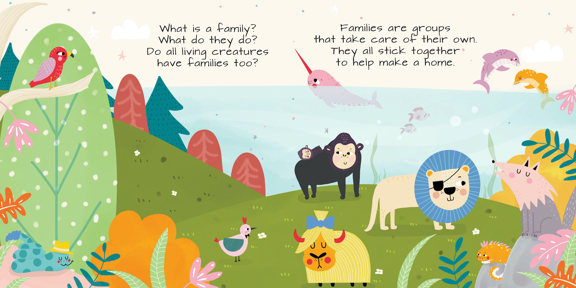 All the way from A to Z, this colorful alphabet primer celebrates all kinds of diverse families, giving each animal family a name. With dolphins and their pods, iguanas and their messes, and kitties and their litters, it’s easy to learn about what makes a family . . . well, a family! Packaged as an adorable, sturdy board book, it will stand up to years of exploration. Whether you are teaching the alphabet, animals, different types of families, or celebrating your own unique family, What Is a Family? is a colorful and fun introduction to the families all around us.