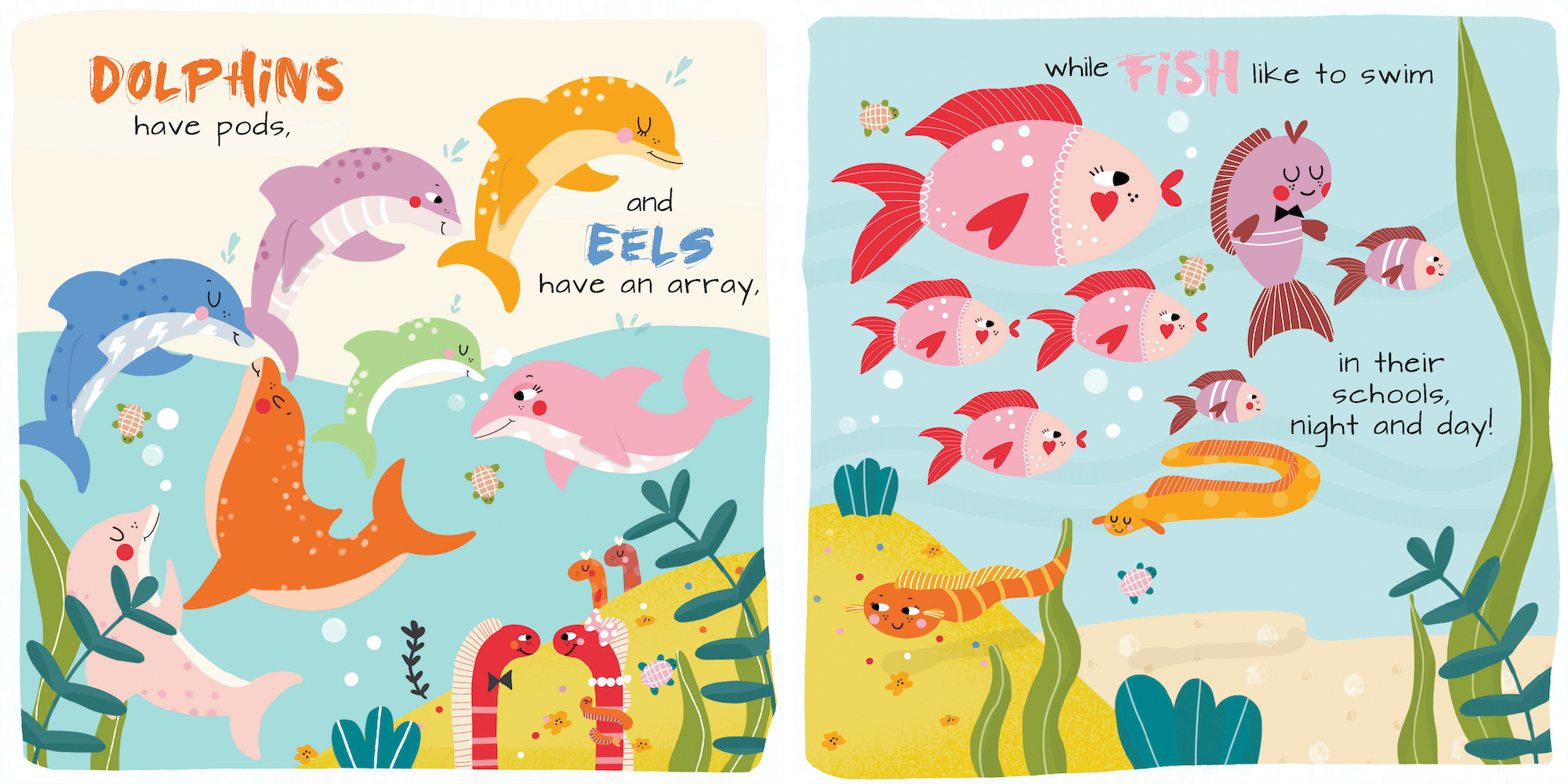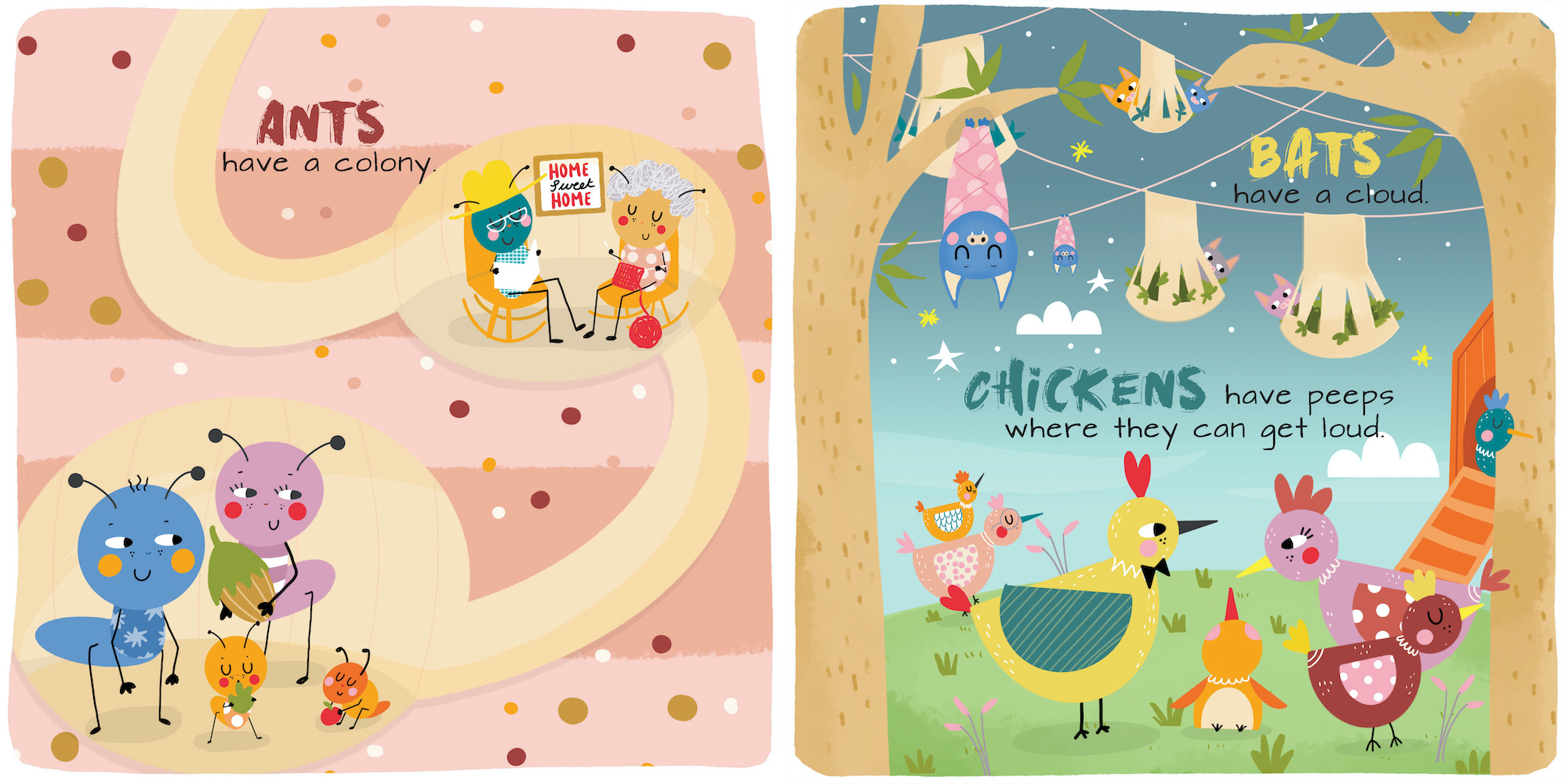 Explore the collective nouns of the animal kingdom in this adorable ABC board book, and help kids discover all the ways families come together—whether as a pack or pod or peep!