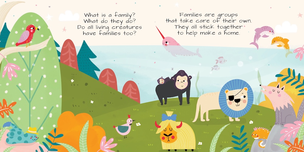 All the way from A to Z, this colorful alphabet primer celebrates all kinds of diverse families, giving each animal family a name. With dolphins and their pods, iguanas and their messes, and kitties and their litters, it’s easy to learn about what makes a family . . . well, a family! Packaged as a well-crafted, sturdy, padded board book, it will stand up to years of exploration. Whether you are teaching the alphabet, animals, different types of families, or celebrating your own unique family, What is a Family is a colorful and fun introduction to the families all around us.