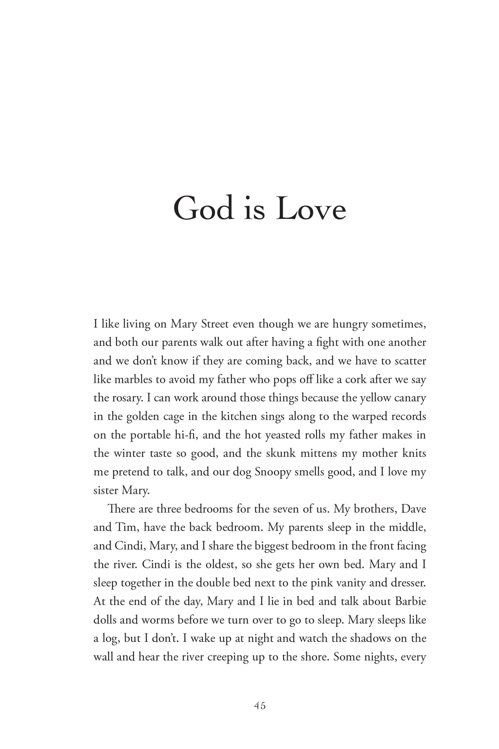 Regi is the youngest daughter in a family that pulsates with contradictions: religious and raucous, tender but terrible, unfortunate yet irrepressible. These honest tales—some hilarious, some heartbreaking—celebrate the glorious and gut-wrenching lives of four generations of Carpenters raised on the Saint Lawrence River in Clayton, New York. From teenagers struggling to find their identity to disabled veterans grappling with the aftermath of war and change to the complications and sweetness of love between family members, this collection of linked short stories holds the universal message that life’s difficulties are softened by love and fortitude . . . and family.